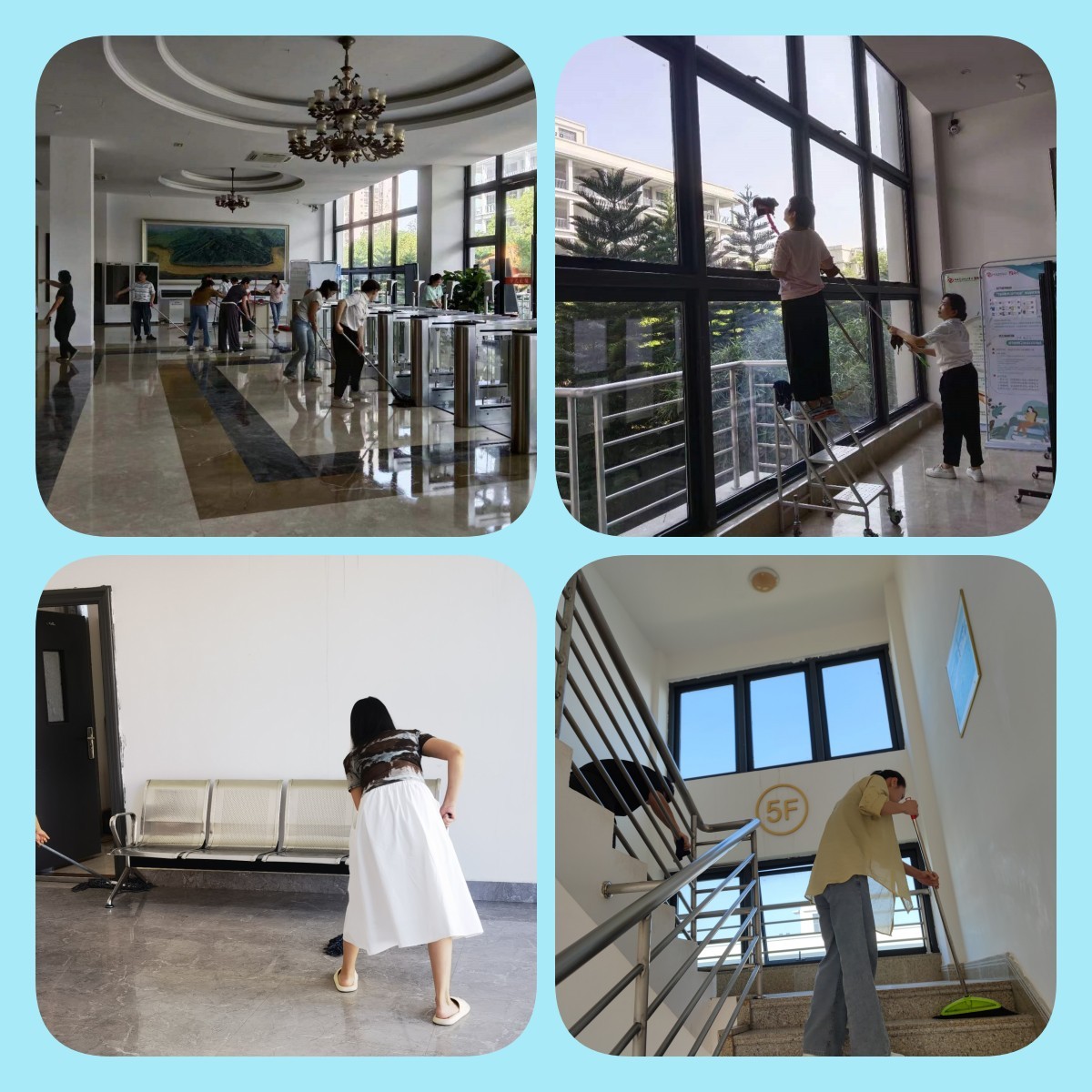馆员们认真打扫