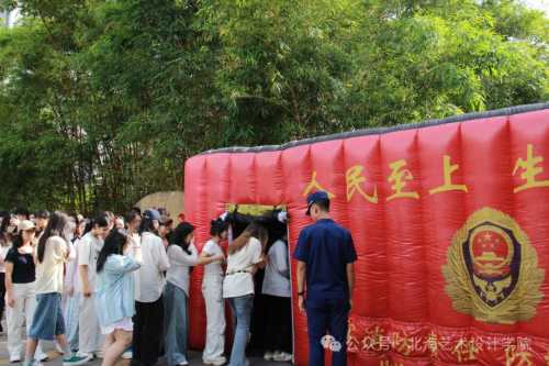 消防活动现场还设置了沉浸式消防体验环节,全体参演人员及众多闻讯而来的师生积极参与体验。图书馆门前,大家争相体验穿越烟道火场逃生,学习穿戴自救呼吸器,在工作人员的指导下操作消防车、灭火器灭火,校医务室人员进行心肺复苏演示和指导。通过亲身体验,师生们对消防安全知识有了更直观、更深刻的理解,自护、自救和互救能力得到有效提升。