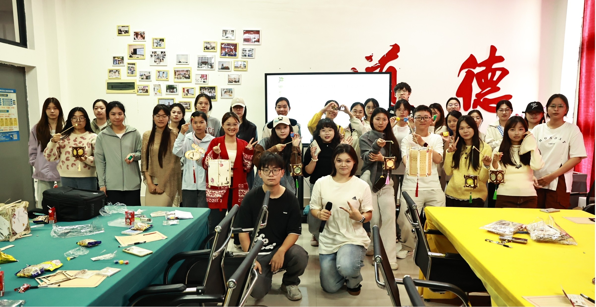 活动中,“方言寻知音”环节把气氛推向高潮:四川同学用巴蜀话朗诵李白《蜀道难》,河南同学以中原口音演绎杜甫《登高》,湖北同学则用荆楚方言唱诵屈原《离骚》。在最热闹的“诗歌密码战”环节中,主持人把“松—,清泉—”等诗句拆成“密码碎片”,现场瞬间化身“抢答器”,三分钟不到,所有题目被“秒杀”,获得积分的团队欢呼声此起彼伏。压轴环节“线结金兰”里,各小队领取灯笼骨架、彩纸、三地主题贴纸,开始“诗灯”创作。只需30分钟,10盏融入“中原诗句+巴蜀意象+荆楚符号”的手工灯笼全部完工。灯笼或绘“黄河之水天上来”,或描“蜀道难”青峰,或点缀“楚辞香草”。