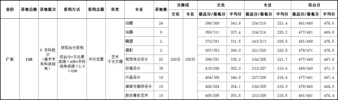 2018年 广东艺术类录取情况