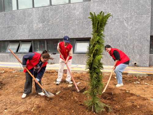 为深入学习贯彻习近平生态文明思想,切实践行“绿水青山就是金山银山”这一理念,坚持人与自然和谐共生,弘扬雷锋精神,增强我校师生绿色环保意识和社会责任感,同时进一步美化校园环境,3月11日,我校团委组织80余名志愿者在南校区开展“凝心聚‘绿’,青年先行”植树节活动。