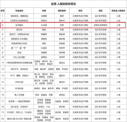8月17日,2022年第14届全国大学生广告艺术大赛(简称“大广赛”)广西赛区竞赛作品评审工作圆满完成。今年我校师生在此次大赛中再次斩获佳绩,共获得区级一等奖6项,二等奖14项,三等奖30项,入围奖20项;学校获评广西赛区“优秀组织院校”称号。