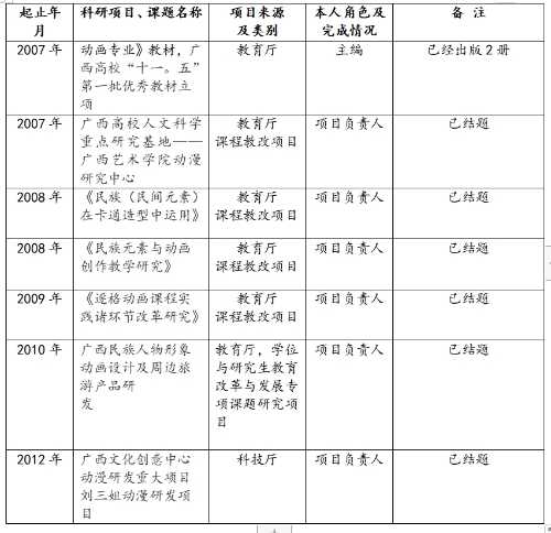 1986年7月~2020年7月,任职于广西艺术学院设计学院动画教研室主任;是广西艺术学院动画专业创始人,动画专业及动画学科、学术带头人;2008年获自治区高校重点实验基地——广西艺术学院动漫艺术研究中心(负责人);2008年成为广西高校首个动画艺术语言方向硕士生导师。