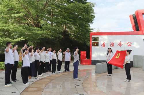 紧接着,党支部书记罗秋梅带领全体党员重温入党誓词,大家高举右手,紧握拳头,齐声而庄严,表达了对党的忠诚和对事业的坚定信念。学习结束后,大家一同参观了“廉”之广场、张岳园、费贻园、孟尝园、镜园等清廉园区,切身体会了“不持一珠”“留名廉山”“珠还合浦”等廉政典故,并沿途观摩学习了纪检监察故事绘、中国共产党史长廊、古今家风家训及清廉金句等内容。园内的“警钟长鸣”吸引党员们驻足思考。