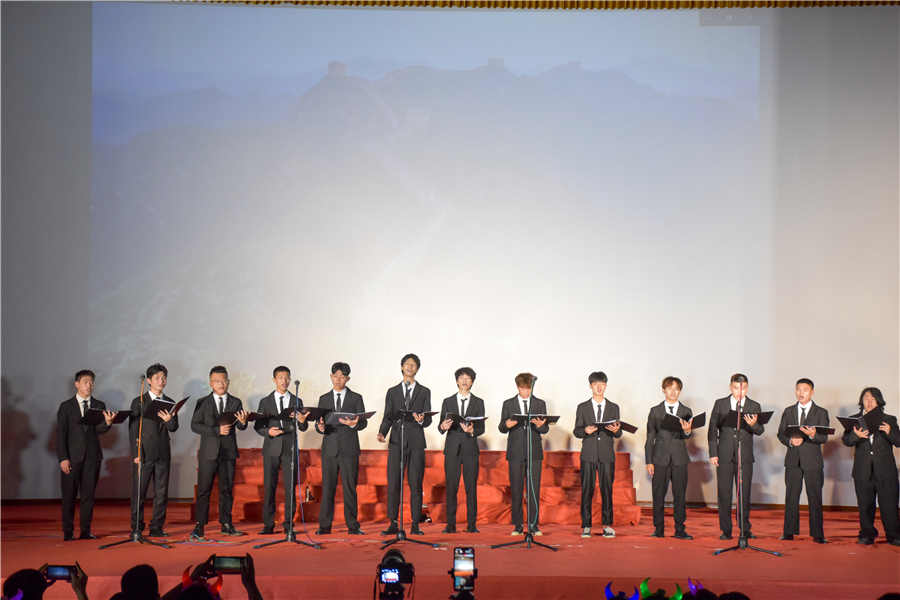 从《义勇军进行曲》到《东方红》,从两弹一星到南巡讲话,从《春天的故事》到《走进新时代》。百年风雨历程,百年辉煌历史,在每个关键时刻,在每一次重要关头,都是您——我们伟大的中国共产党,带领我们向前。合唱团成员文普宏、林磊、林书炀等同学放声歌唱歌曲《把一切献给党》。