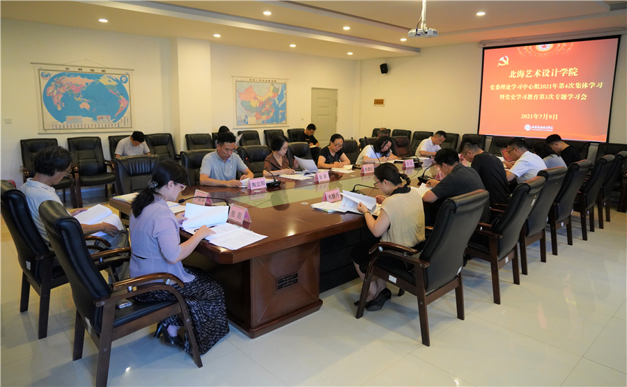 7月9日,北海艺术设计学院召开党委理论学习中心组2021年第4次集中学习暨党史学习教育第3次专题学习会,深入学习贯彻习近平总书记在庆祝中国共产党成立100周年大会上的重要讲话精神。