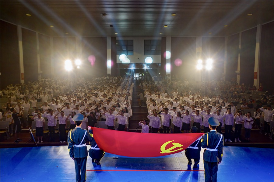 在中国共产党成立100周年之际,6月28日晚,北海艺术设计学院在校大礼堂举行新党员入党宣誓、老党员重温入党誓词仪式。学校党委书记张阳、校长卢新华等学校党政领导班子、新发展党员和老党员代表等共计400人参加活动。
