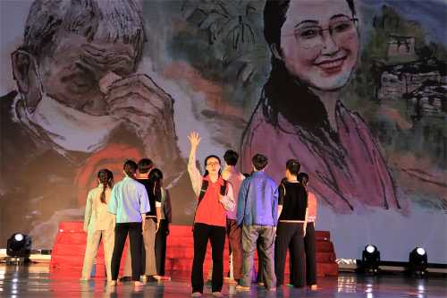 第三篇章“砥砺奋进新征程”,展示了党的十八大以来中国特色社会主义建设取得的伟大成就,以及党的二十大胜利召开具有的重大意义。《中国这十年》节目由马克思主义学院覃家惠教授结合党的二十大报告精神,生动展示了中国这十年取得的历史性成就和发生的历史性变革,使在场师生进一步增强民族自信心和自豪感,坚定实现中华民族伟大复兴中国梦的志气、骨气、底气。歌曲《领航》表达了师生们对中国共产党的深厚情感,对实现国家富强、民族振兴、人民幸福的坚定信心。集体诵读《请党放心强国有我》表达了北艺学子坚定理想信念,矢志拼搏奋斗,不断砥砺奋进的铿锵誓言。