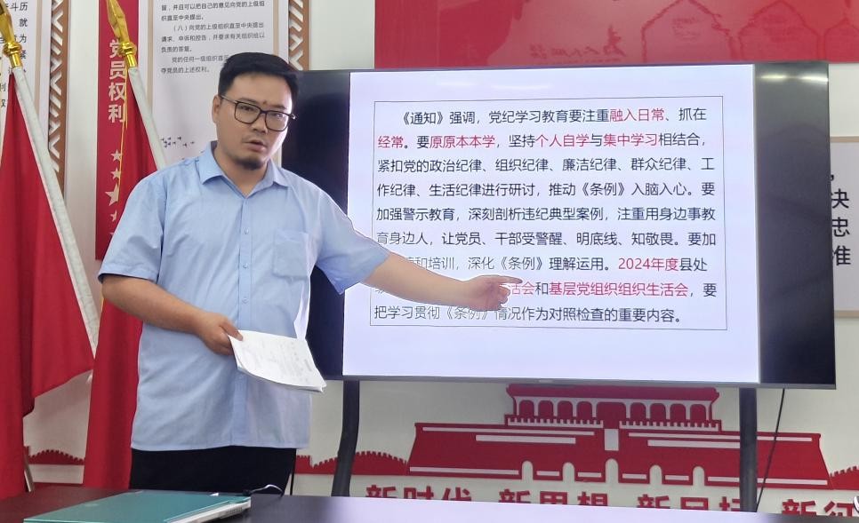 张帆书记首先传达了上级关于开展党纪学习教育重要讲话和文件、会议精神,并对学院党总支党纪学习教育工作进行了安排部署。他强调,学院党总支召开党纪学习教育工作动员部署会,目的是深入贯彻落实党中央和上级的决策部署,全面加强我院党员干部的党性教育和纪律建设,推动全面从严治党向纵深发展。紧接着,张帆书记对学院开展党纪学习教育工作作出部署:要求各党支部要认真贯彻落实,扎实推进党纪学习教育有序开展,确保党纪学习教育取得实效。各党支部要建立健全工作机制,明确任务分工,细化责任落实,采取个人自学与集中学习、专题辅导与交流研讨、开展主题党日活动等方式,把党纪学习教育和三会一课、政治理论学习等密切结合起来,充分发动、全员动员、凝聚合力,为学院高质量发展提供充足的精神动力和纪律保障。
