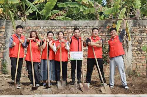 整个现场呈现出一片热火朝天的景象,大家种下了几十棵小树苗。