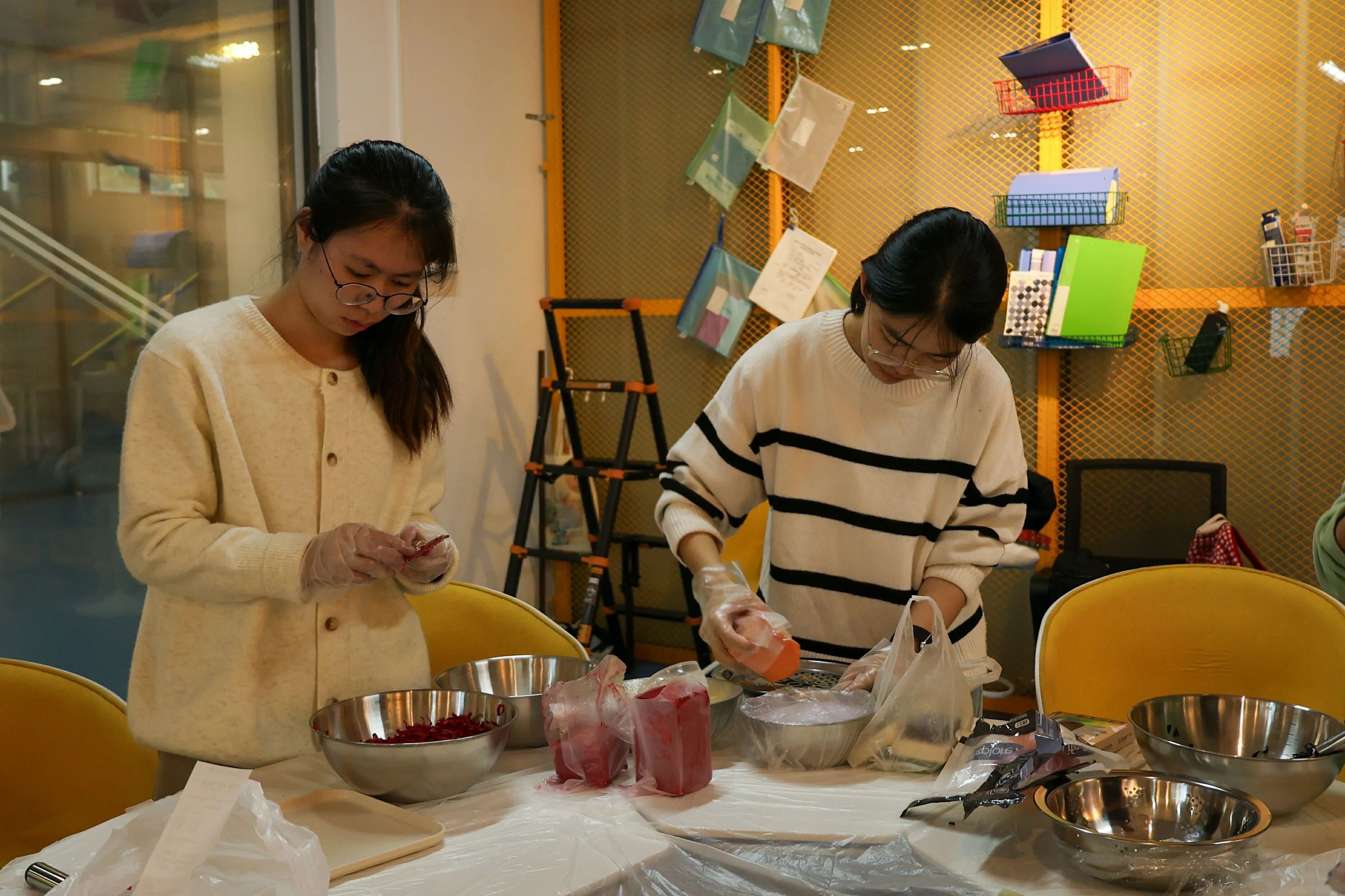 学生沉浸在非遗古法制皂过程中