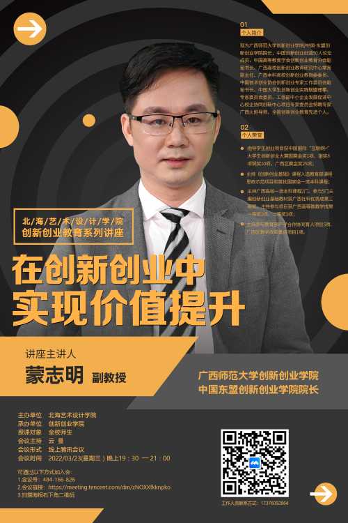 随后,蒙志明院长向大家详细介绍了广西师范大学的部分双创实践活动,例如大学生创客马拉松、东盟双创系列课程、创客日、东盟跨境电商训练营、区块链训练营、新媒体训练营等活动。蒙志明院长指出大学生通过参加这些双创实践活动不仅能开拓社会视野,启迪创新思维还能从中锻炼创业能力,磨练创业意志,快速有效地提升个人的创新创业综合素质。