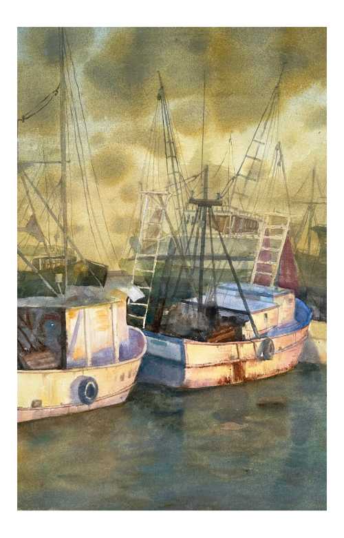 梁晓明《休渔时节》 50cm×55 cm 2023年 纸本水彩
