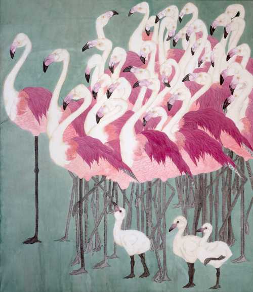 徐子烨《火烈鸟群》150×175cm 2023年 纸本