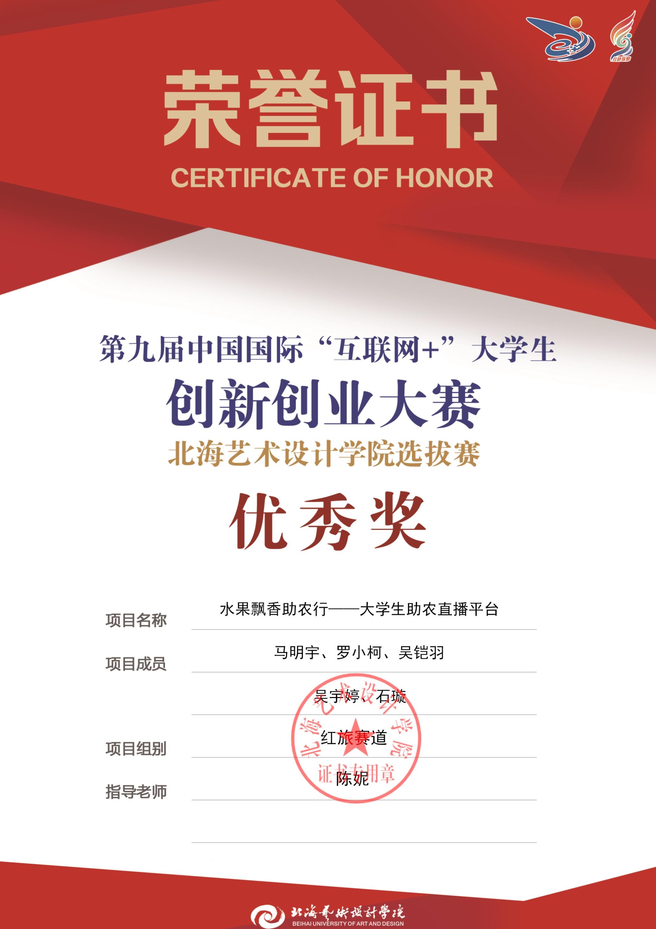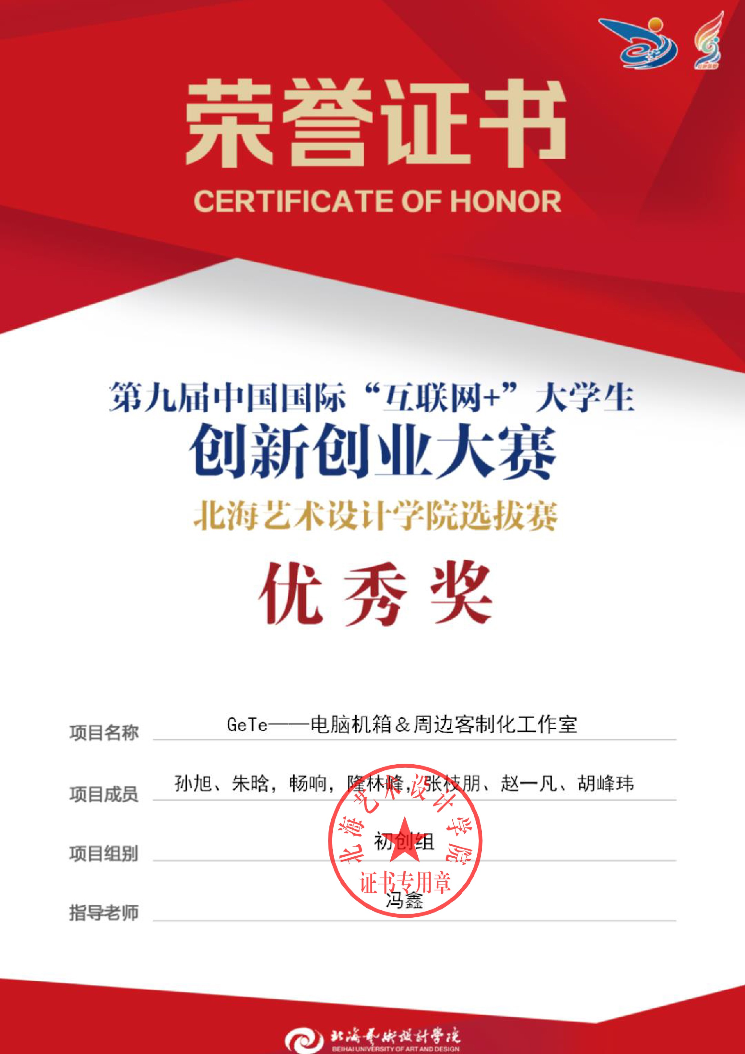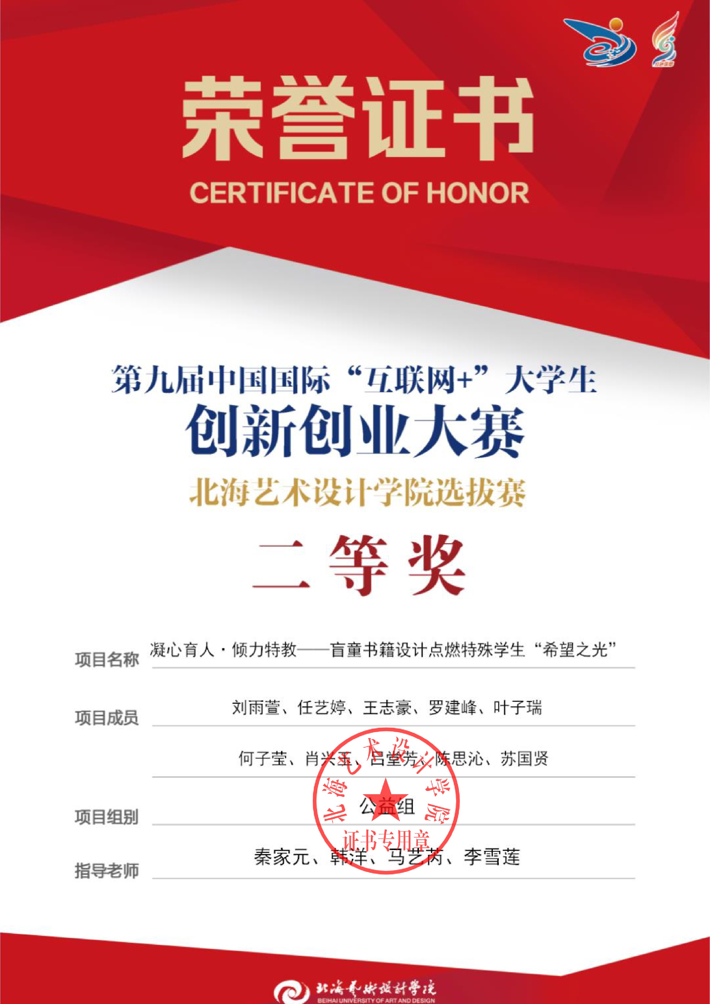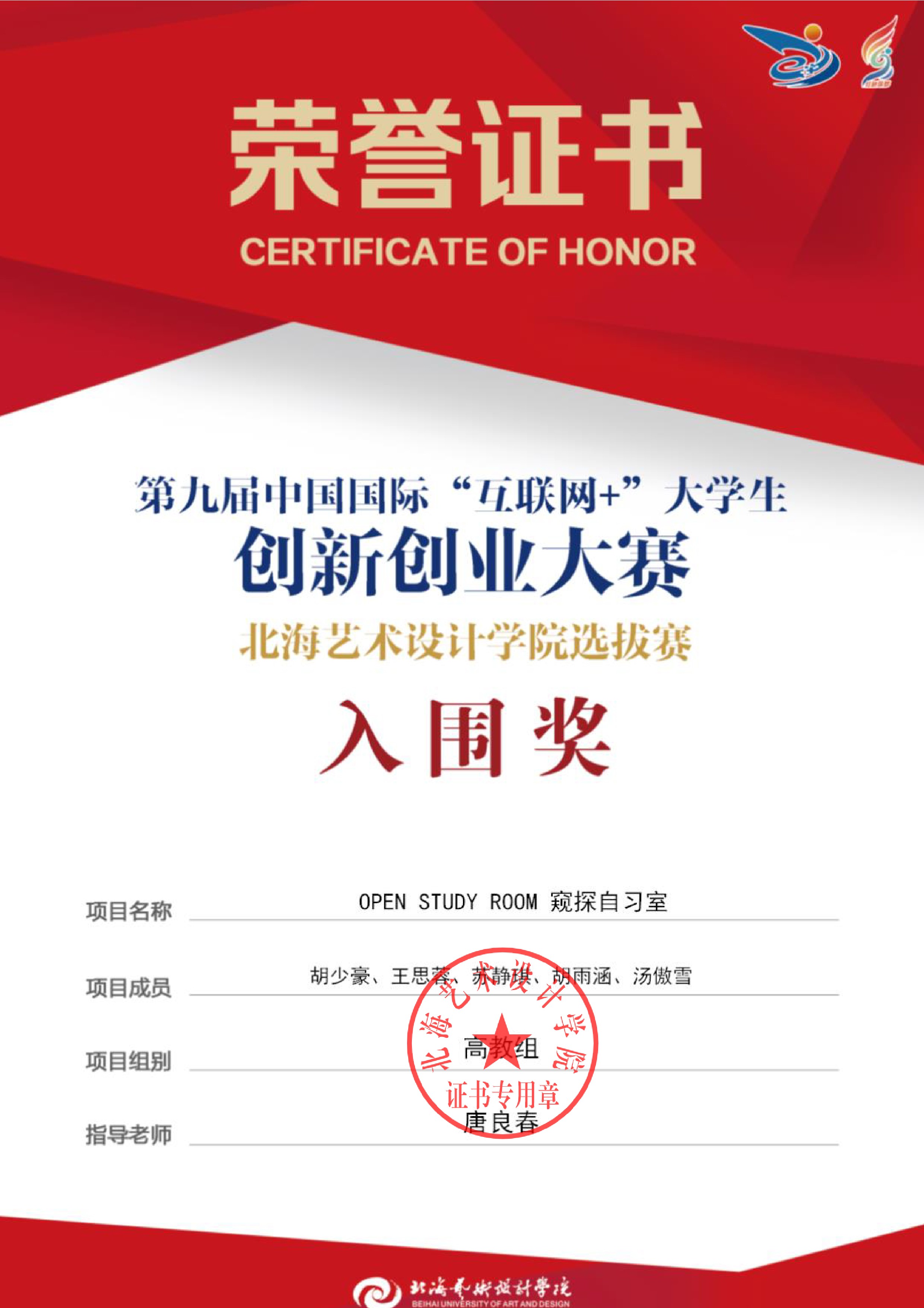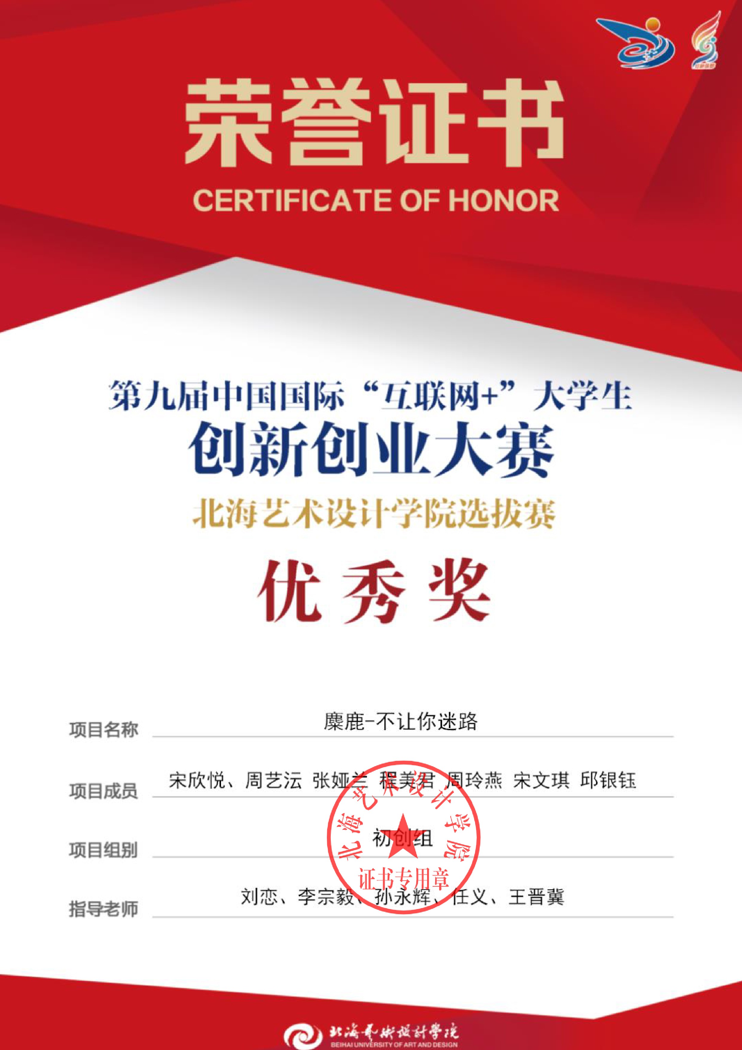 第九届中国国际互联网+大赛校级证书