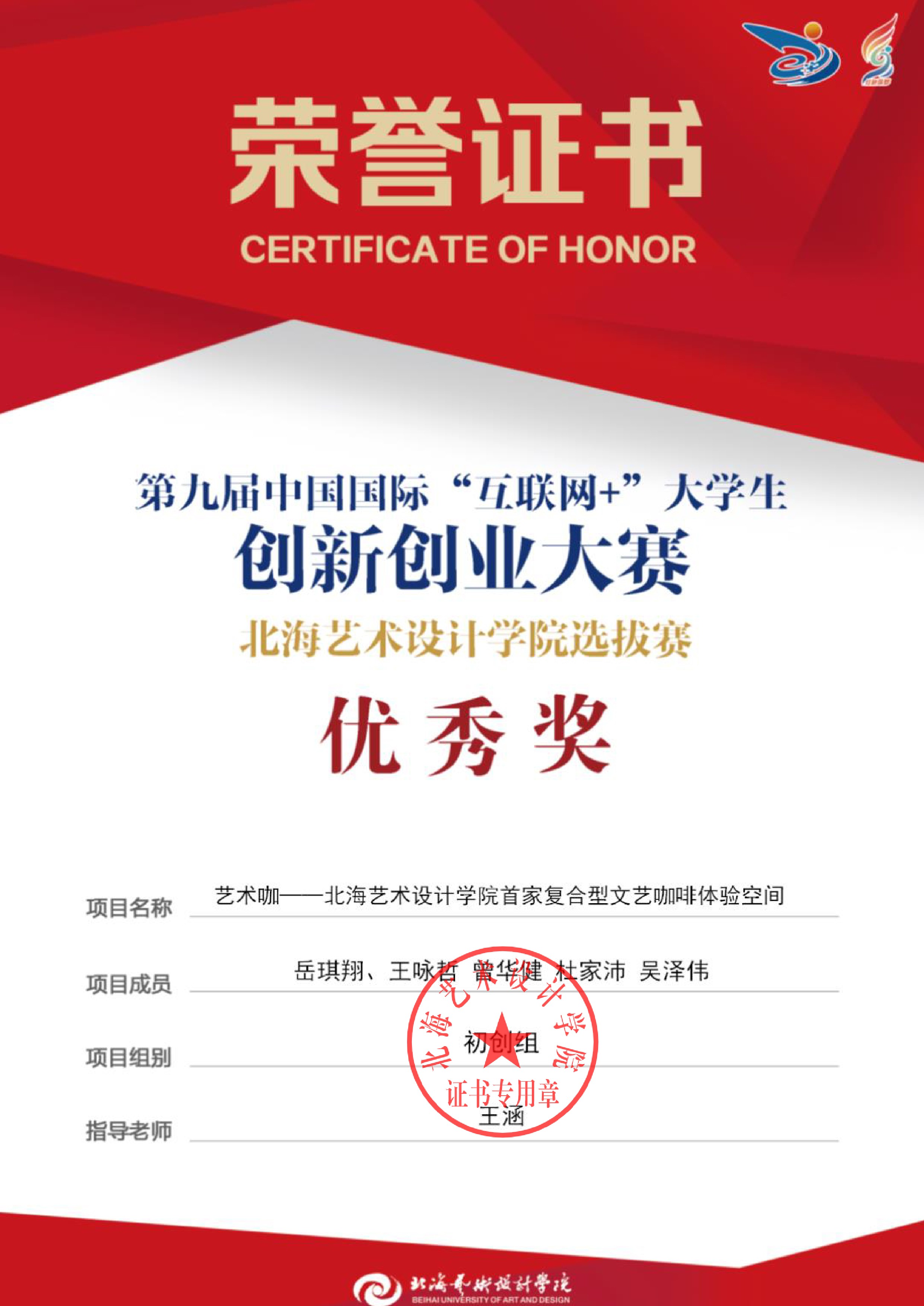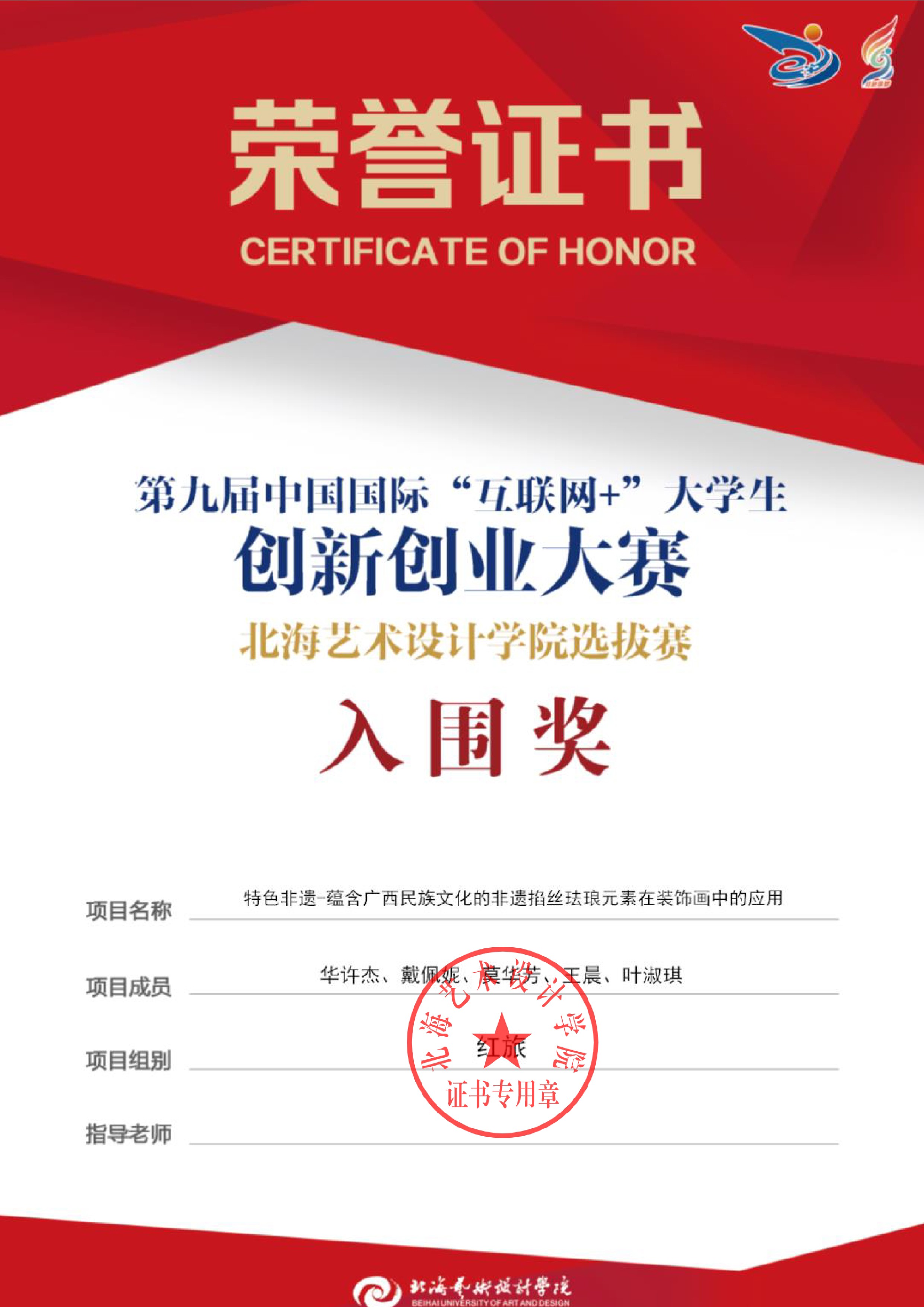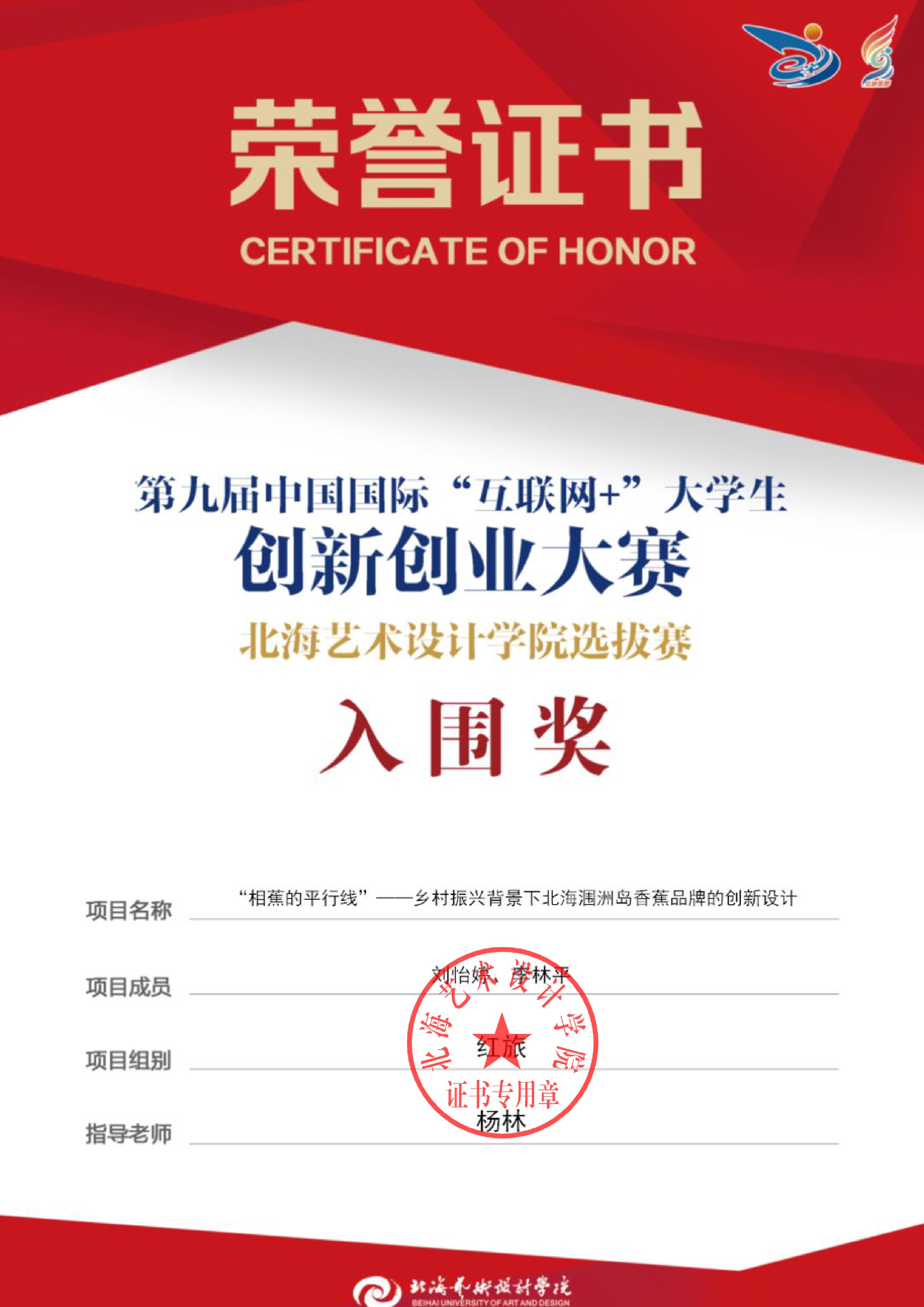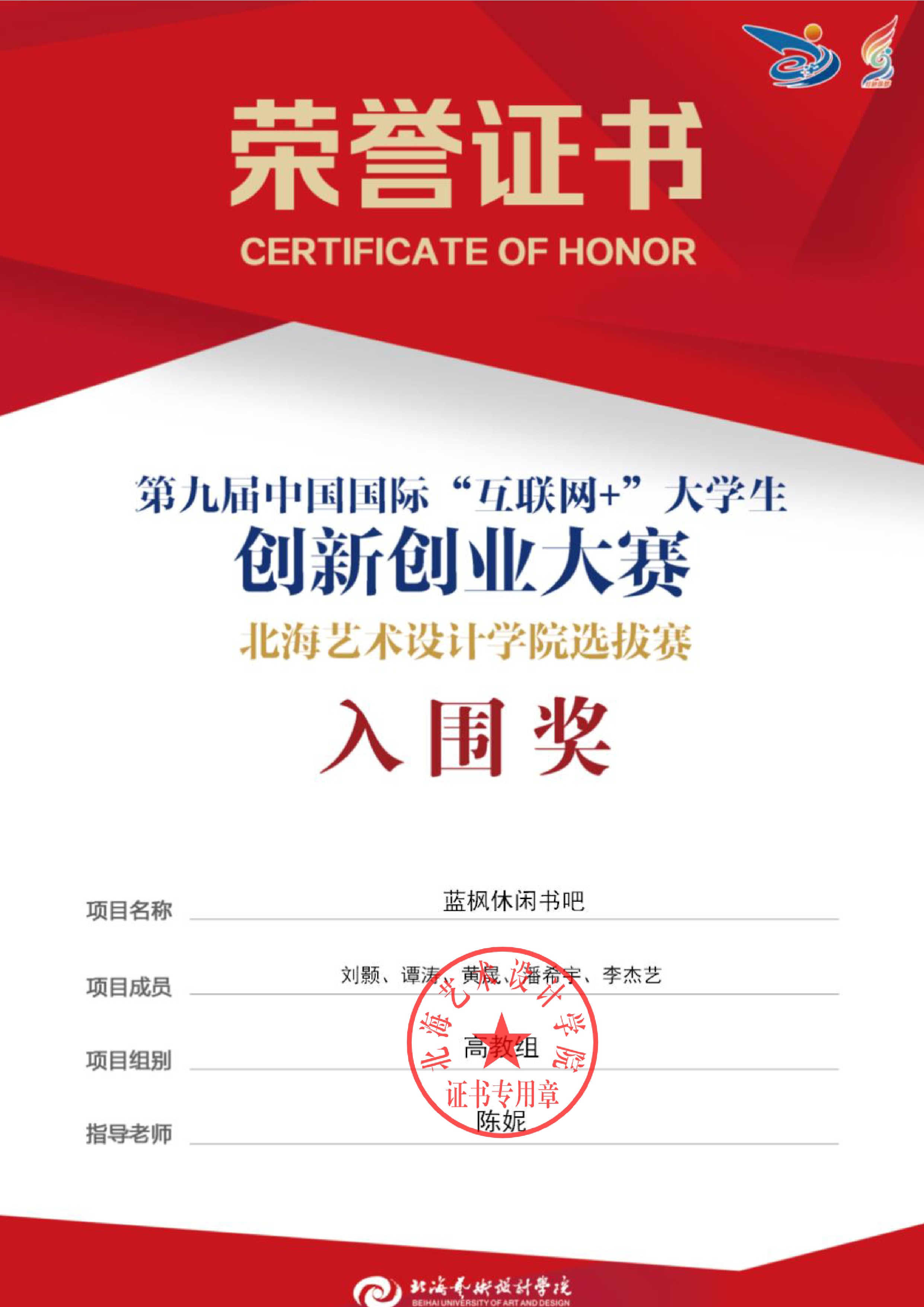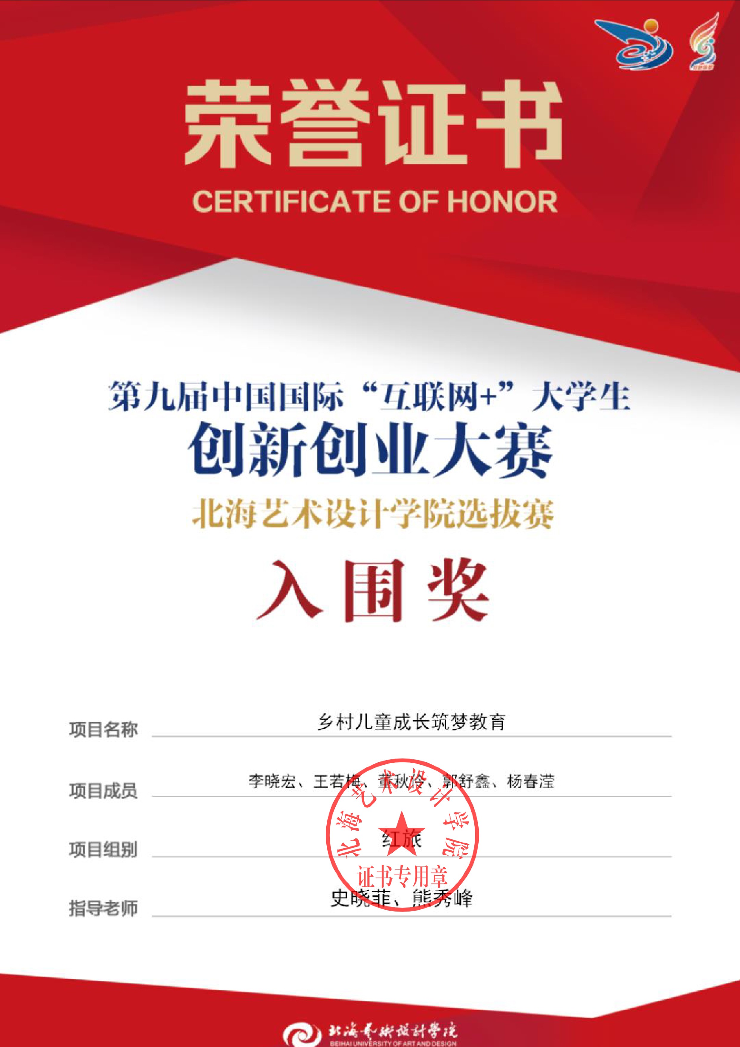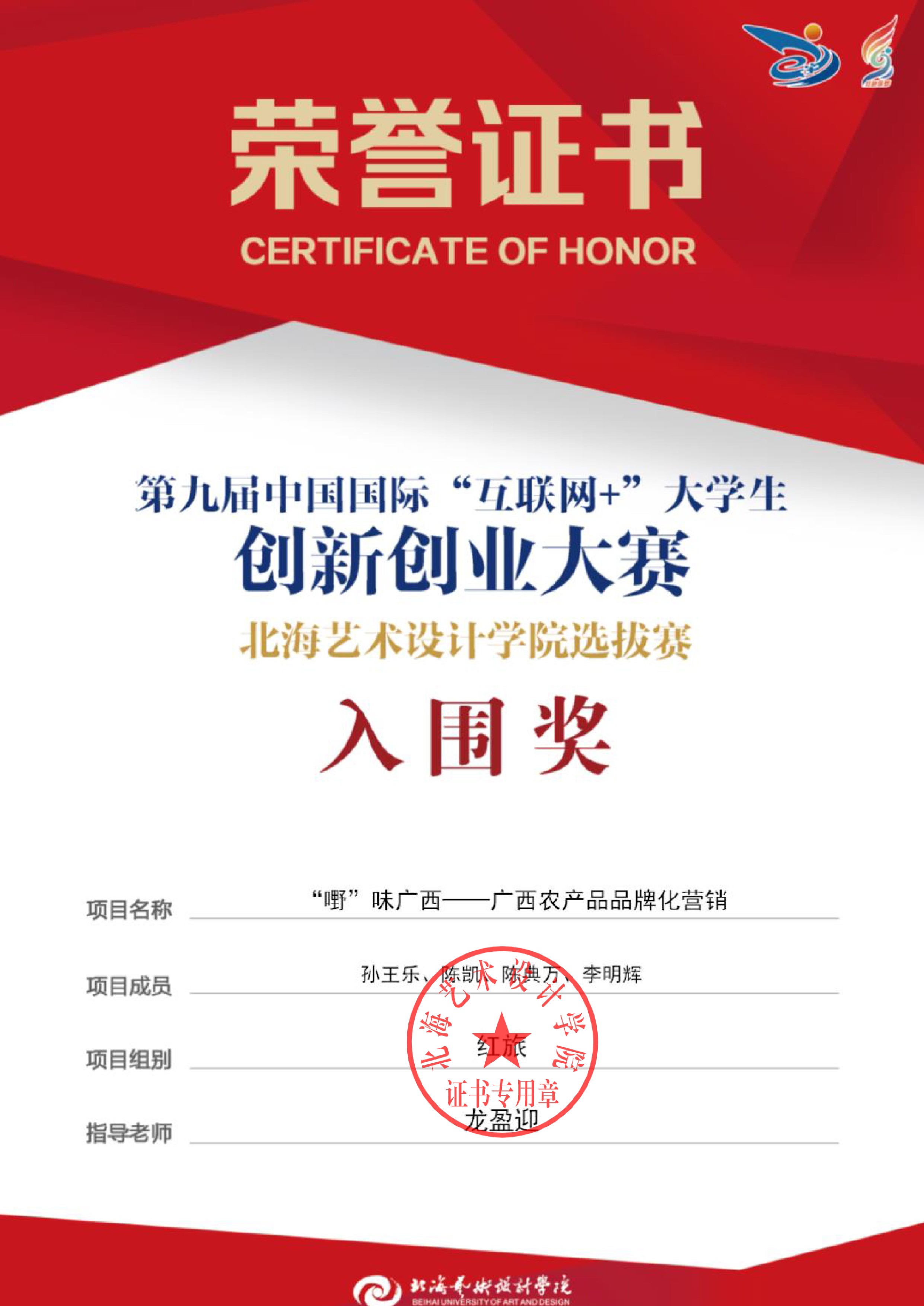 第九届中国国际互联网+大赛校级证书