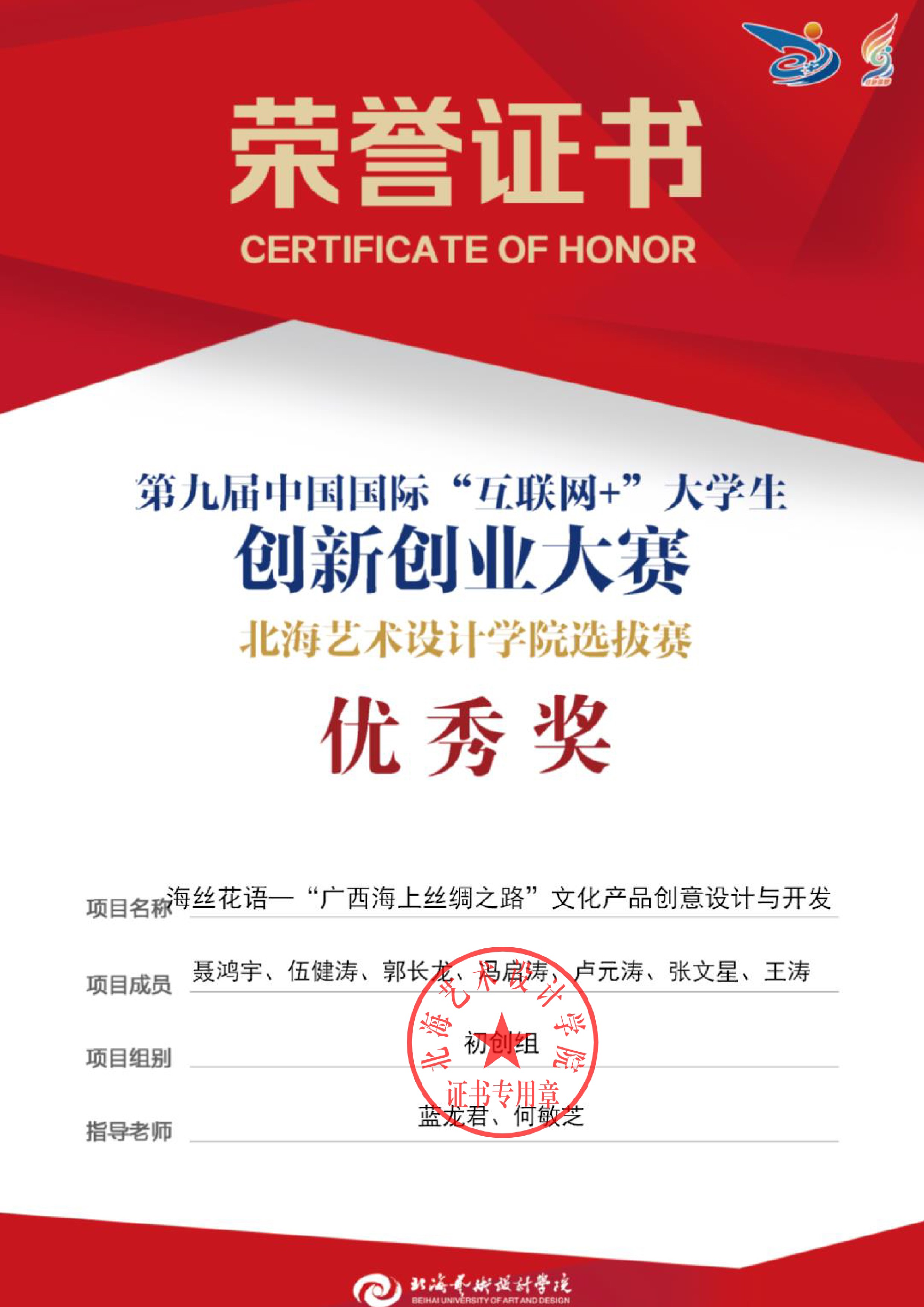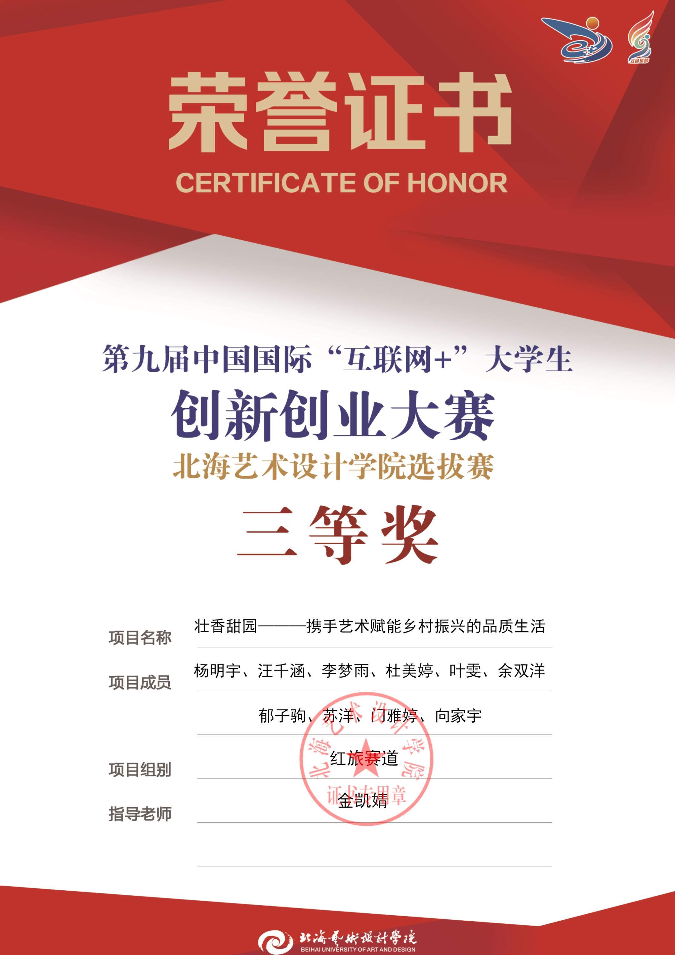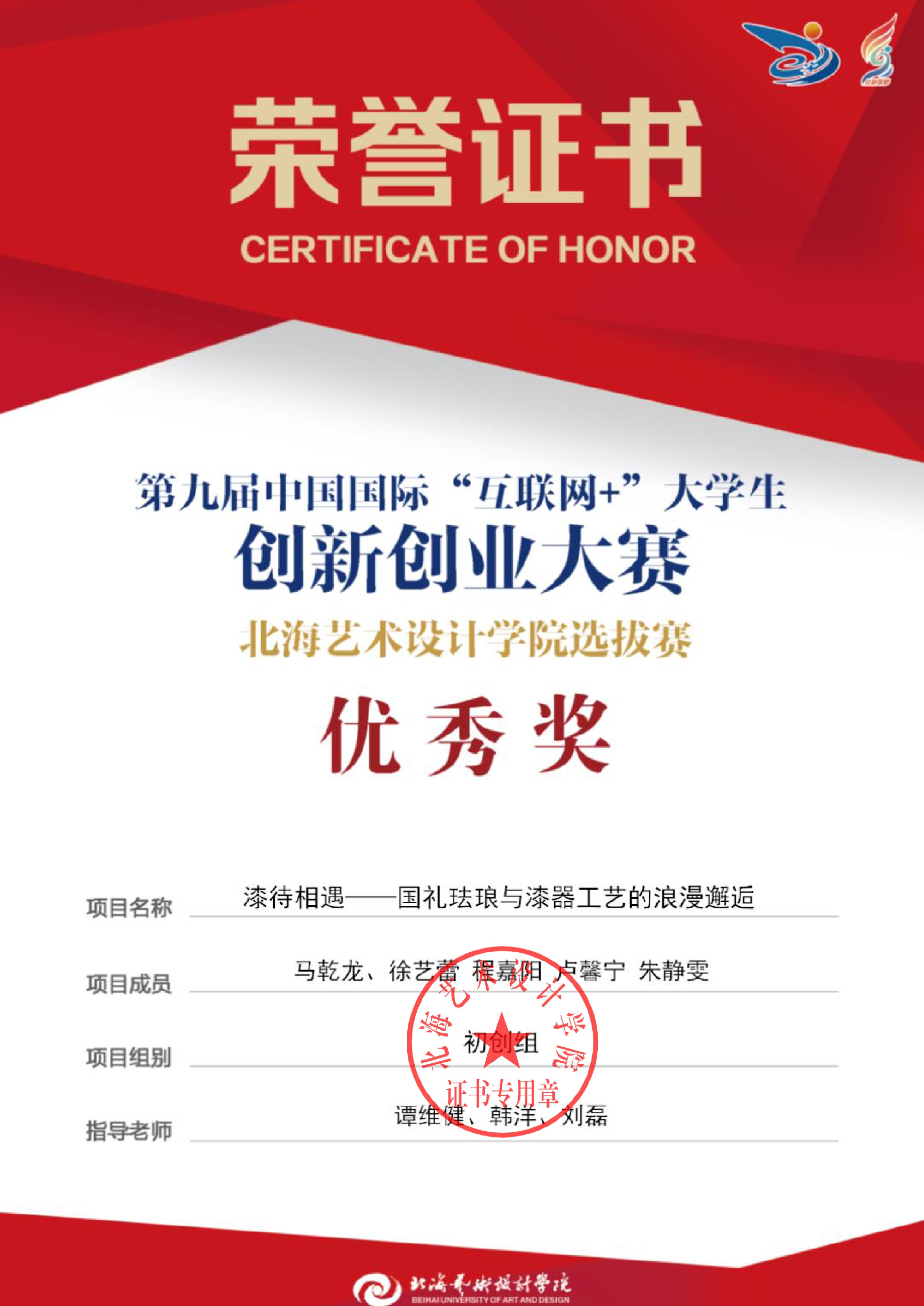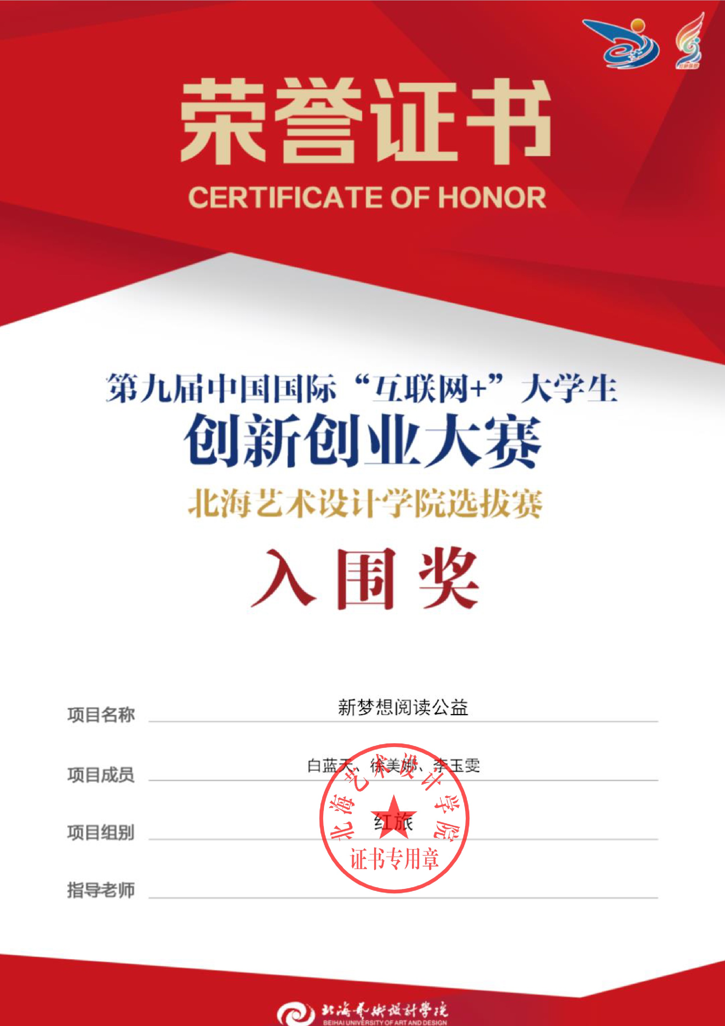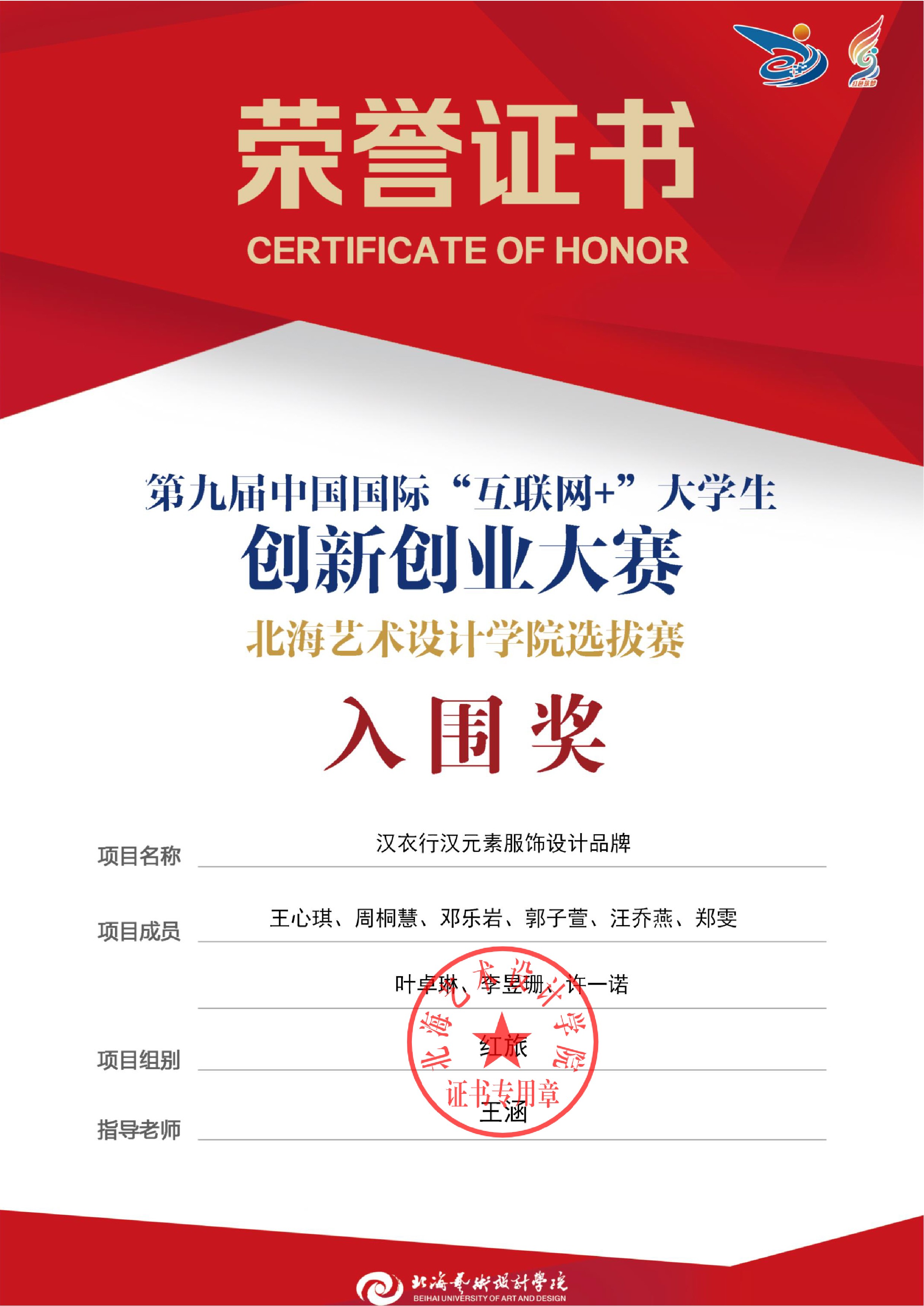 第九届中国国际互联网+大赛校级证书