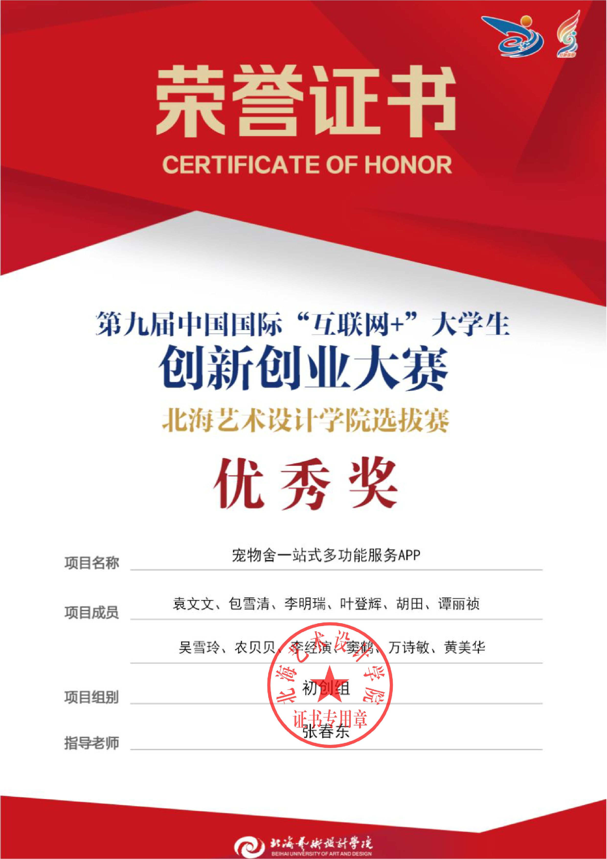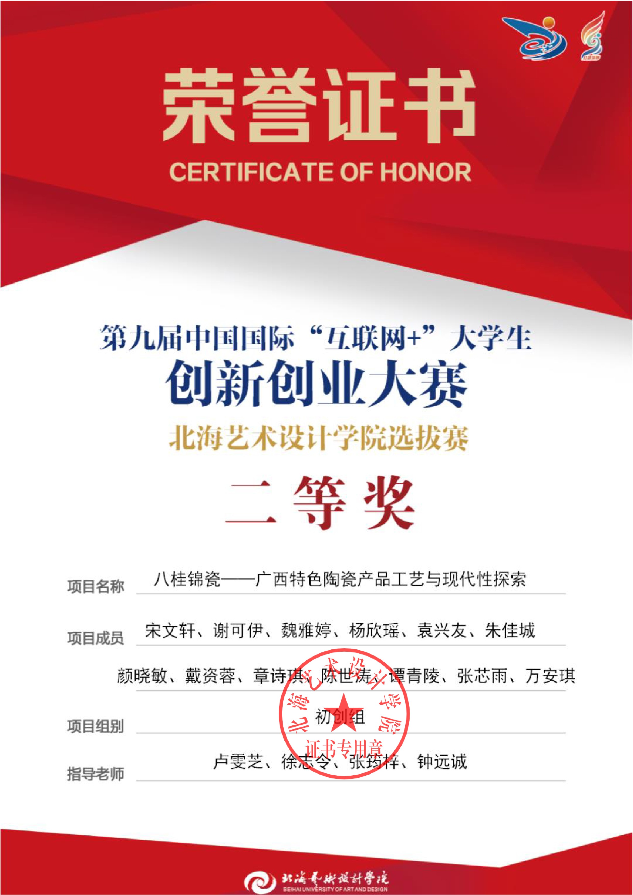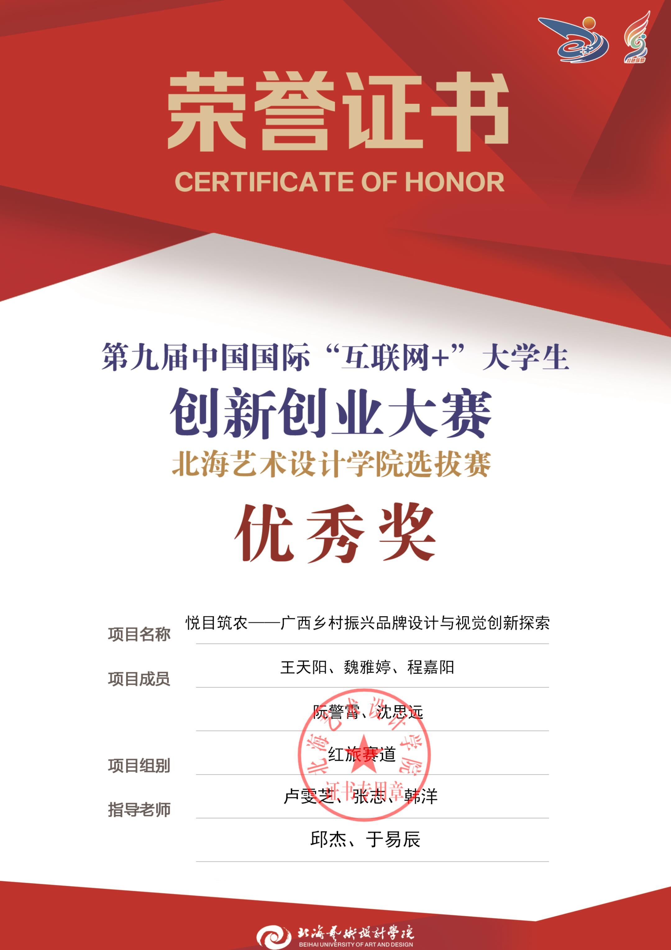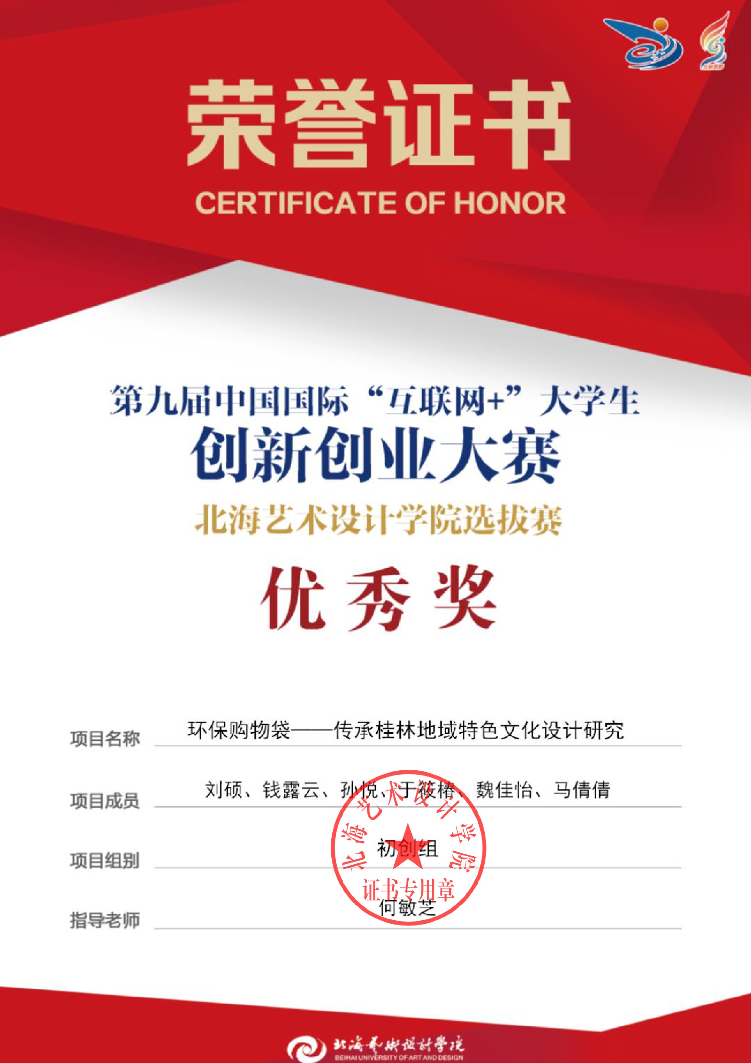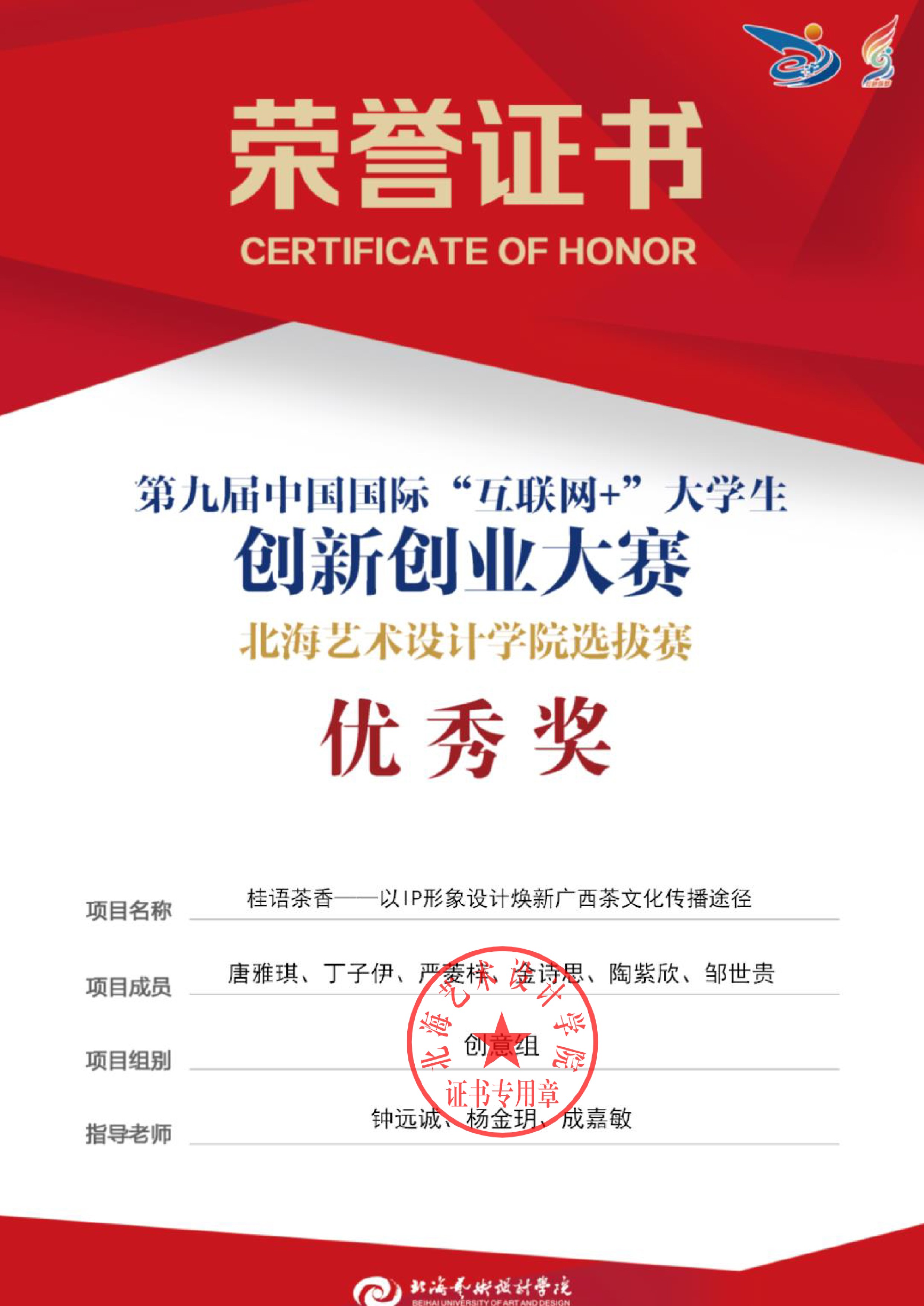 第九届中国国际互联网+大赛校级证书
