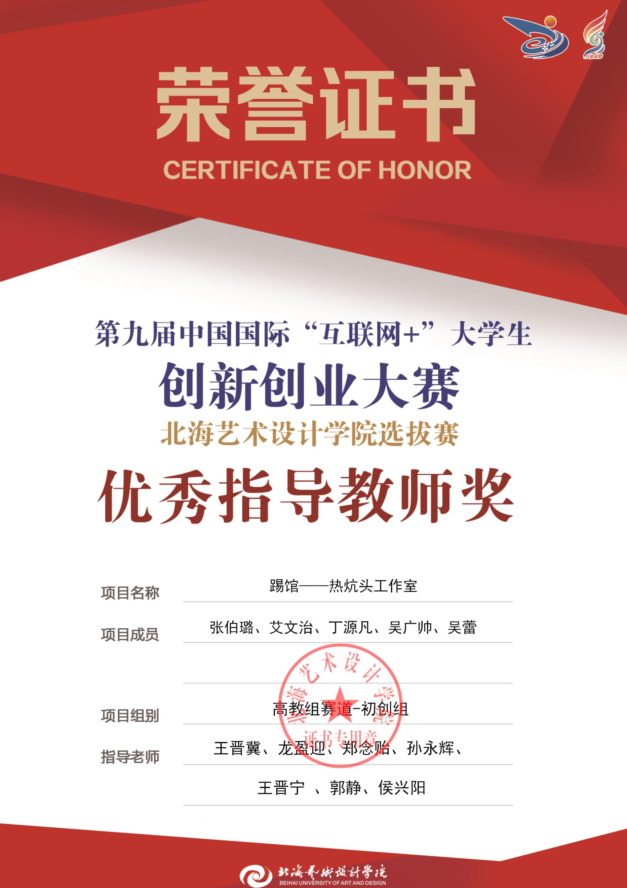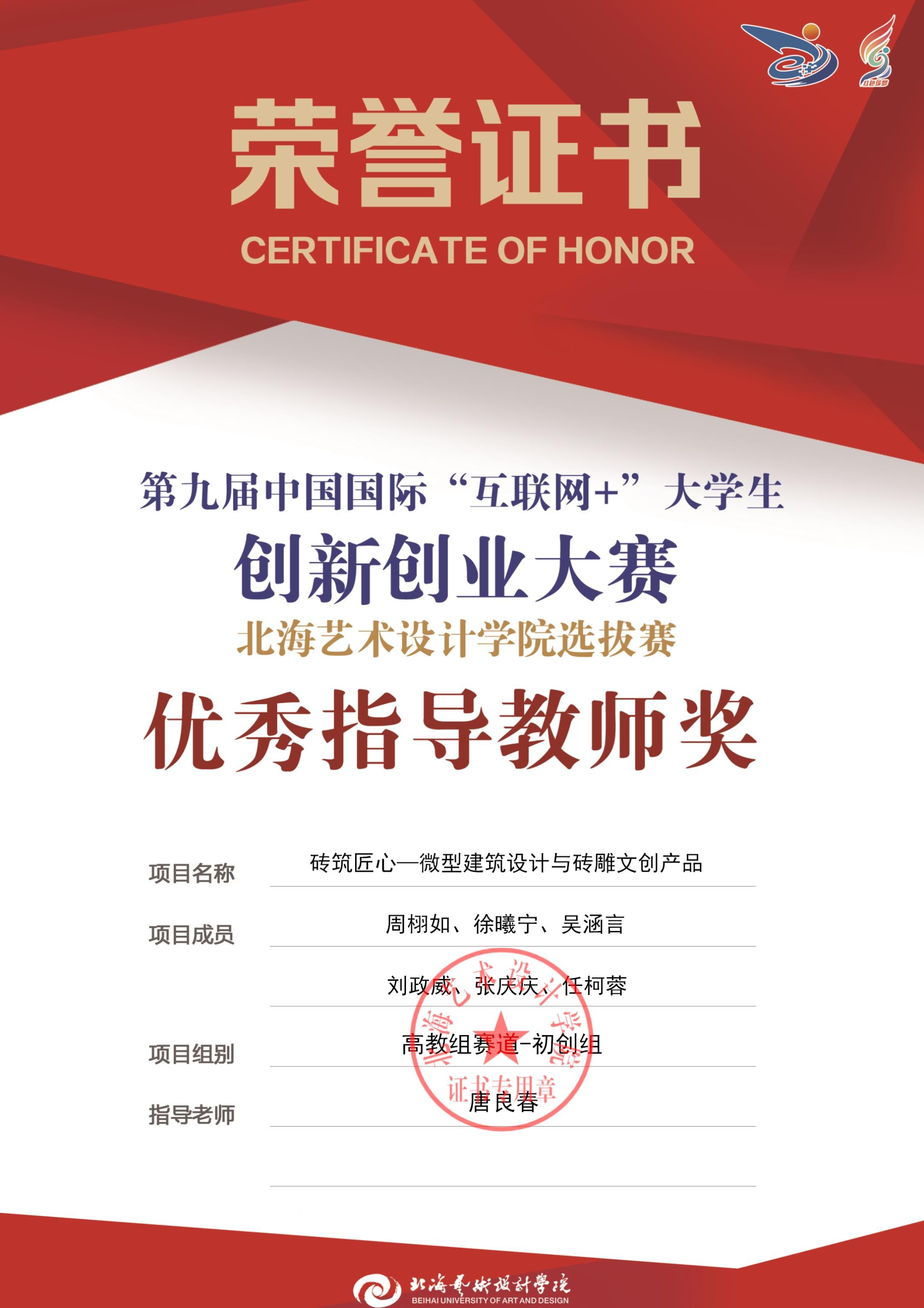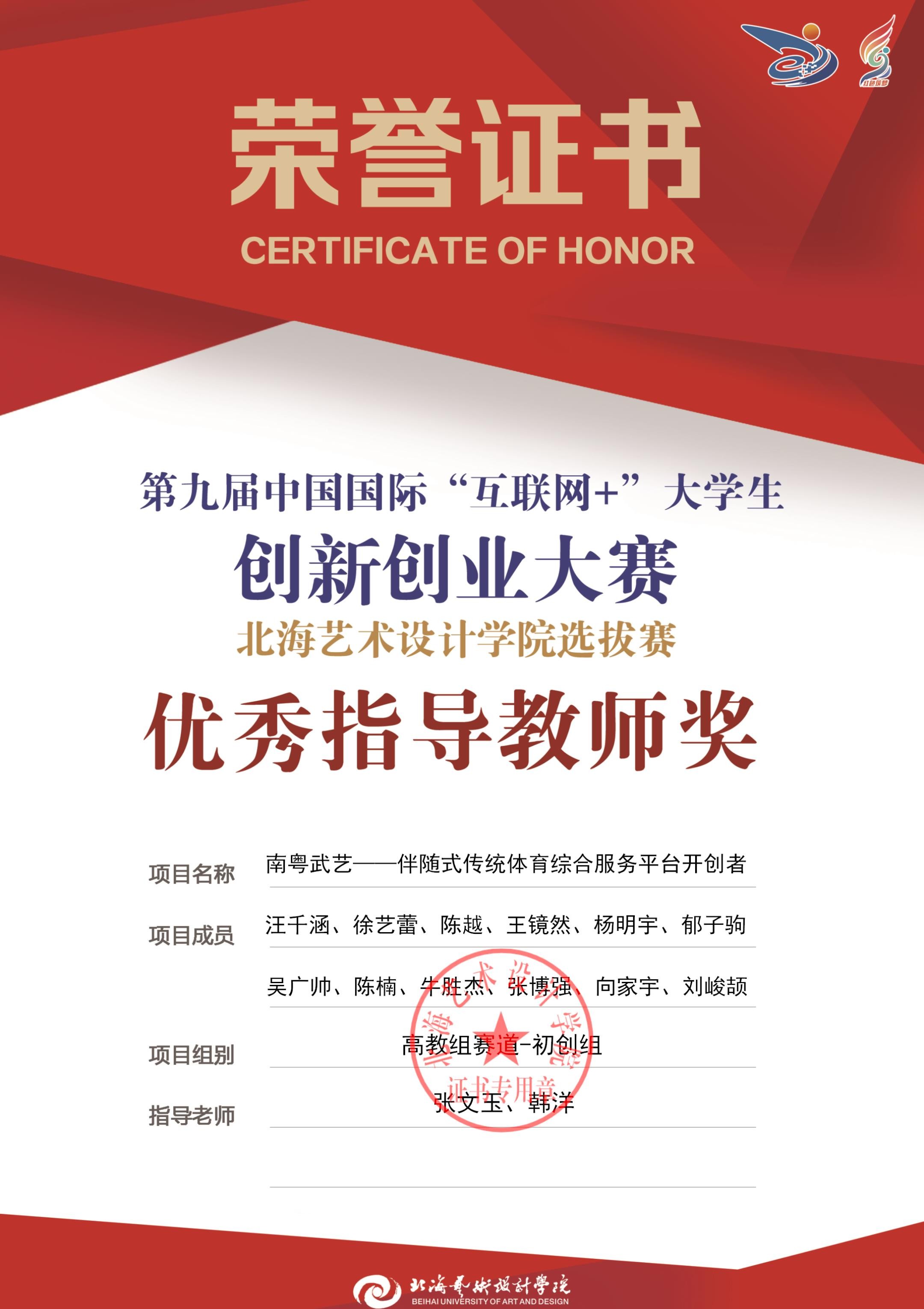 第九届中国国际互联网+大赛校级优秀指导教师