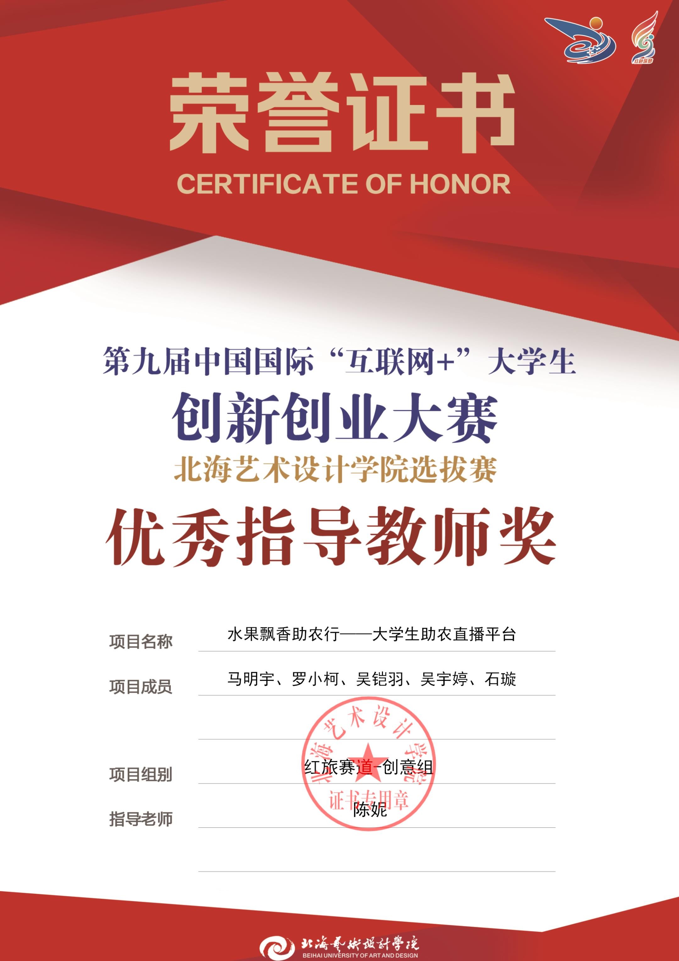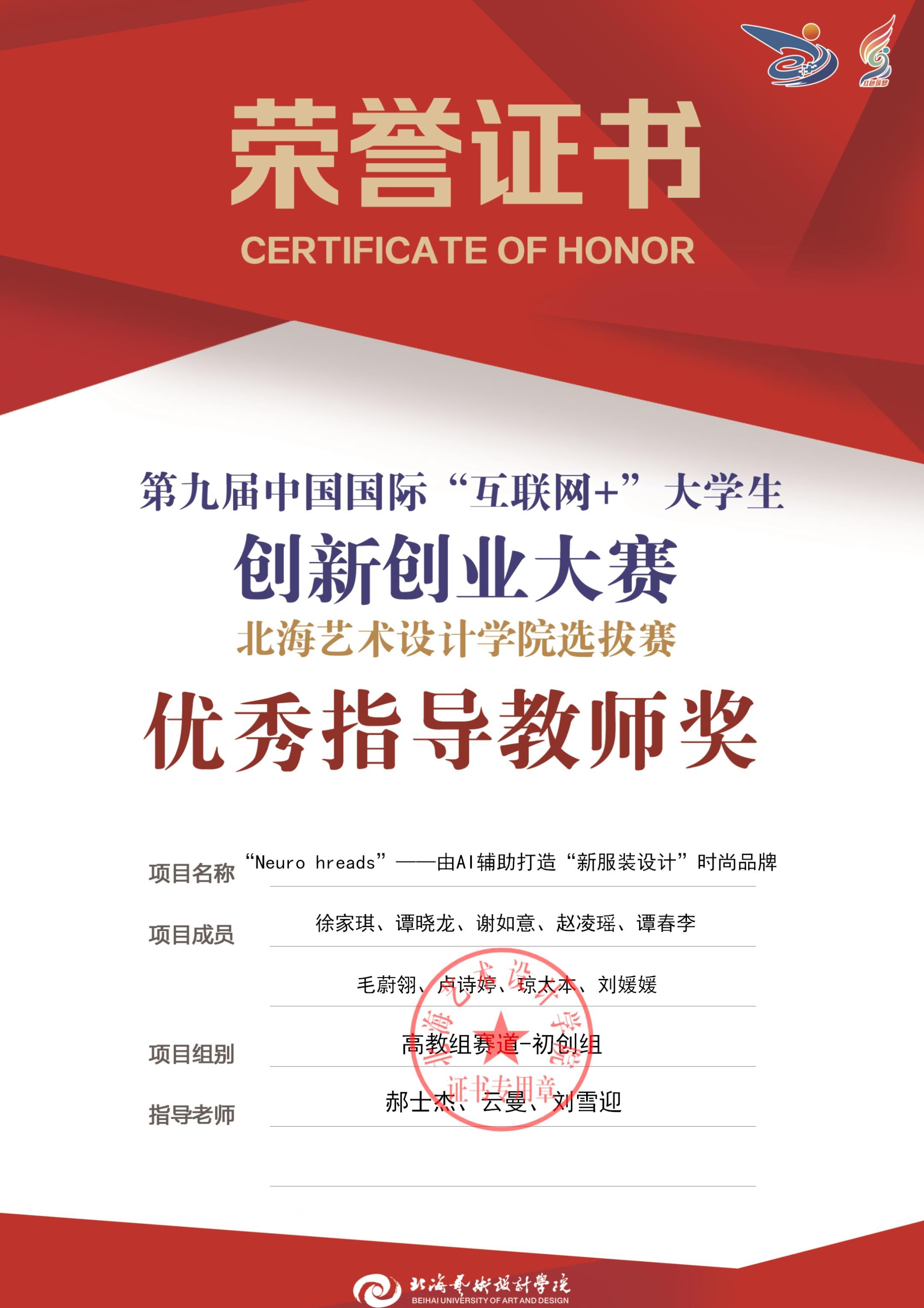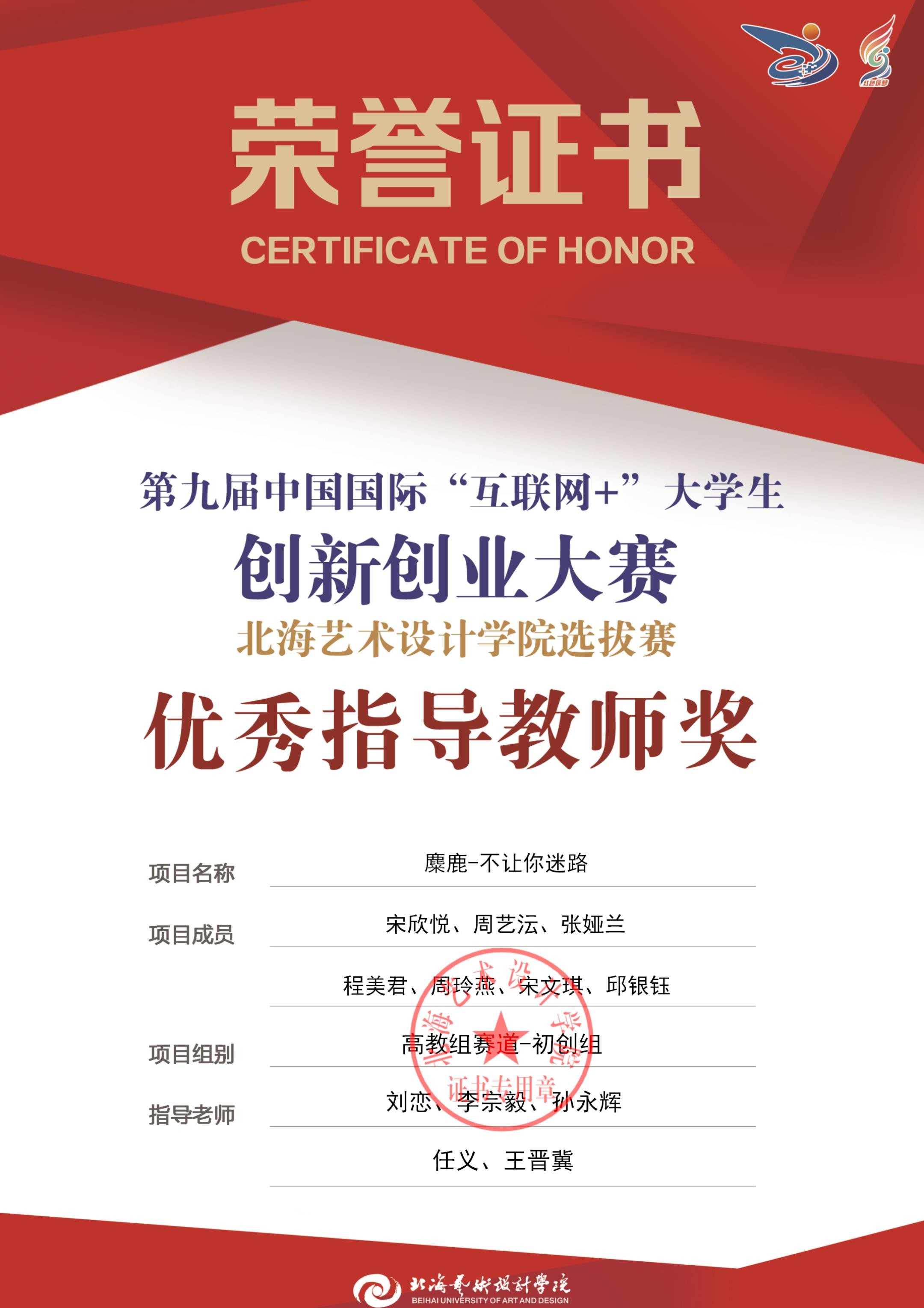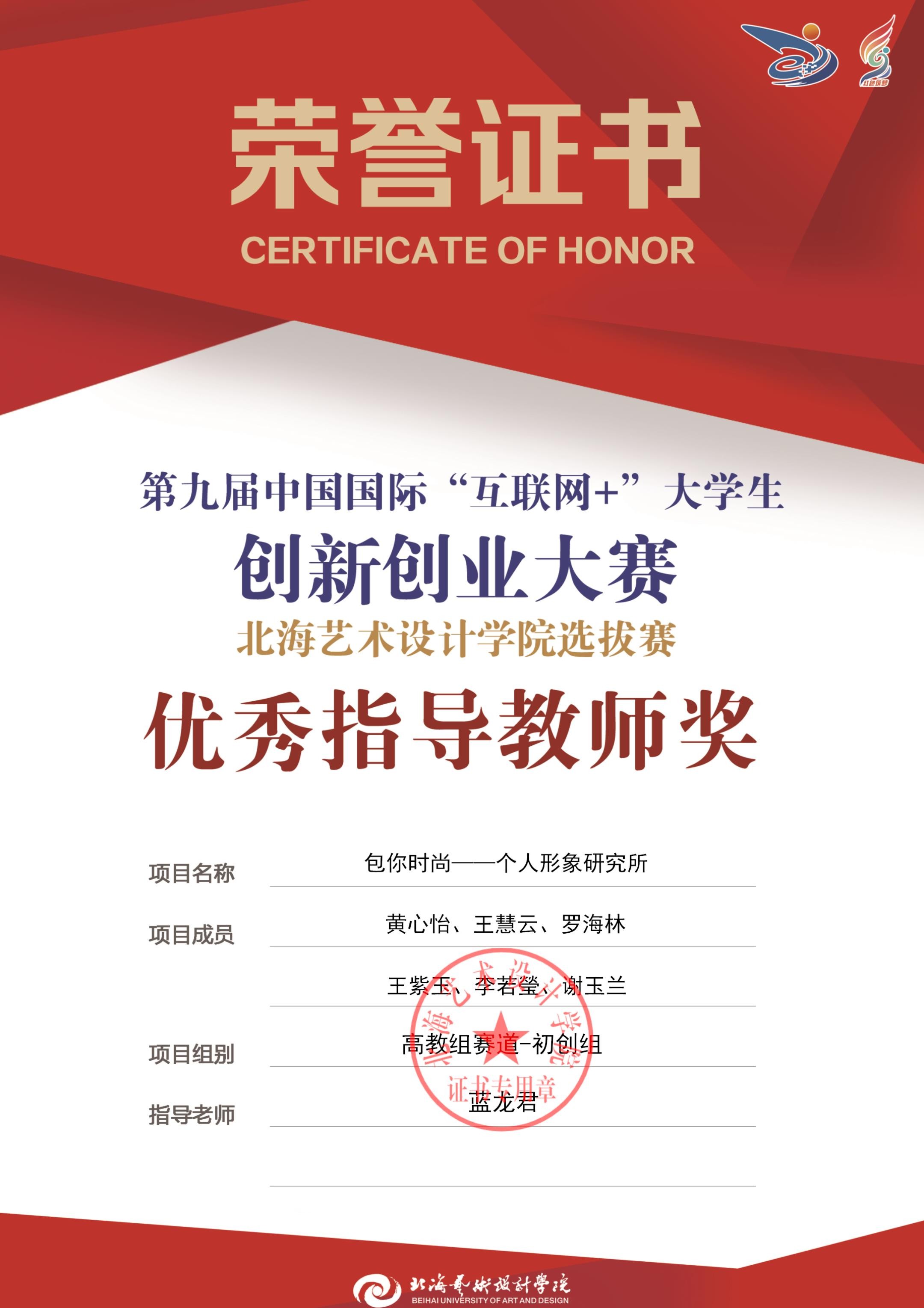第九届中国国际互联网+大赛校级优秀指导教师