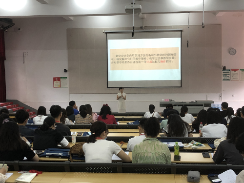 广西师范大学硕士生导师林铭教授从教学设计的原理和内容出发,开展了以“大学课堂教学设计的理念、方法与实践”为主题的专题讲座,讲解了大学课堂教学设计的理念、方法以及教案撰写的注意事项等。