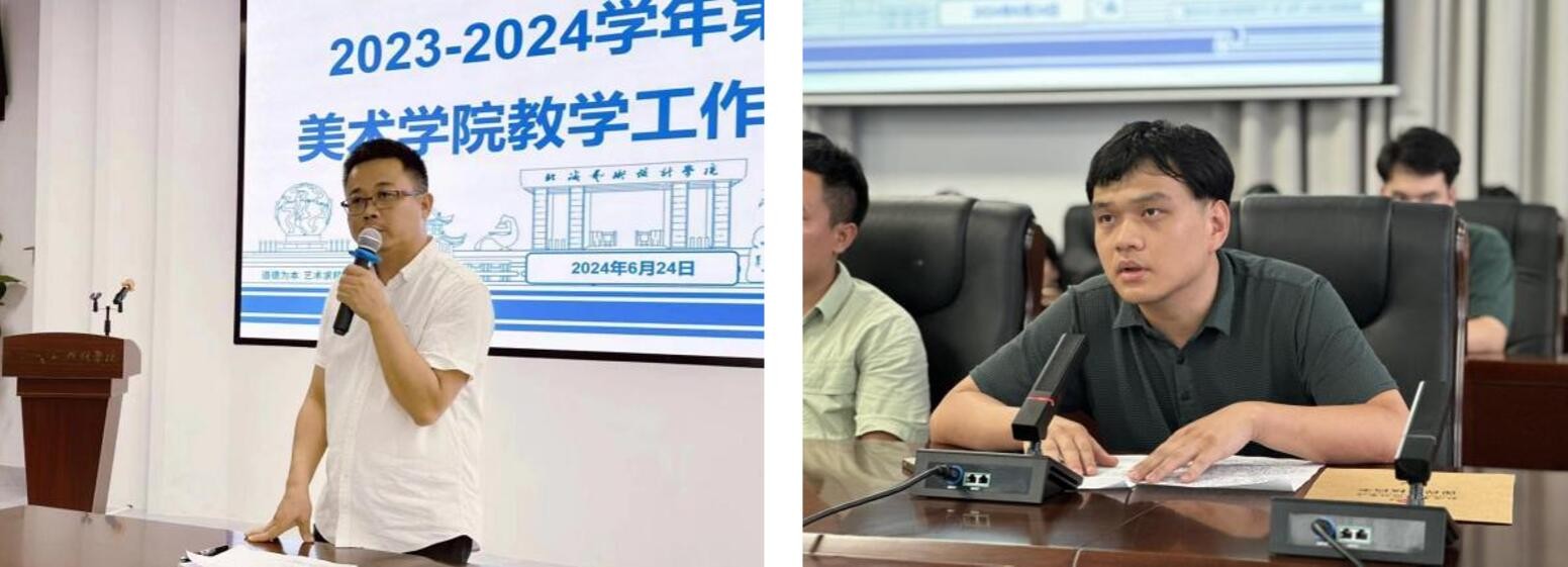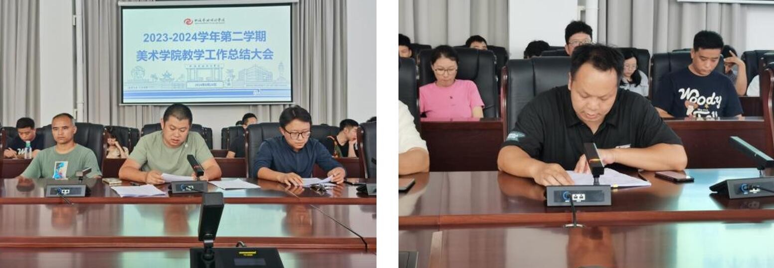 2024624日下午,美术学院在南校区艺德楼八楼会议室举办20232024学年第二学期美术学院教学工作总结大会。本次会议出席人员有教务处副处长林瑜、美术学院党总支书记韩玮、美术学院龚为院长、肖玺副院长、金凯婧副院长、实验室主任、各教研室主任及美术学院全体教师。