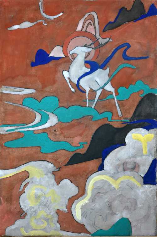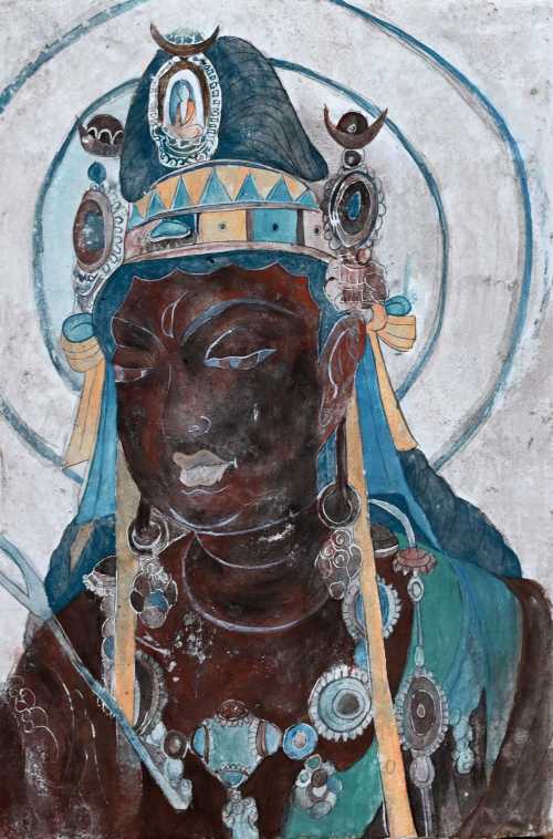 我的专业是水彩。水彩使用水溶性颜料,以水作为媒介,颜料的透明度较高;与中国画有所不同,中国传统壁画则是使用天然矿物色以及水干色颜料,相比水彩更加厚重。水彩的主要技法有:干画法、湿画法、干湿画法相结合,通过笔中水的多少来把握颜色的深浅;中国传统壁画则是先打底稿、再勾线、后画墨稿、最后上色。而敦煌莫高窟在经历了自然灾害后所呈现出的历史的破旧感,与水彩恰好有相似之处。通过这门课程的学习,我发现可以把中国传统壁画的表现方式运用到水彩之中,创新绘画方式,实现多种绘画方式的融合,给我日后的创作带来了全新的视角以及思路。