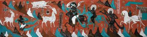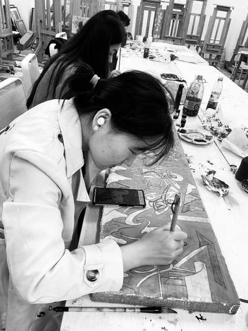 《中国传统壁画临摹》是面向美术学院学生的专业拓展课,以理论和实践相结合的方式,初步认识敦煌壁画的经典遗存。课程从莫高窟的历史背景、文化内涵和壁画故事文本的梳理,在理论上对敦煌壁画构建出一个立体的认识。要求学生绘制中严格按照传统壁画的绘制流程,体会古代画师对壁画工艺的尊重与严谨。建议学生按小组结合完成整铺壁画的临摹,感受壁画独特的图像叙事逻辑,也可个人选取局部进行现状临摹。临摹过程中体会矿物材料的特性、美感,并分析经过时间洗礼后的壁画色彩的承接关系等。鼓励来自不同专业的同学发挥自身艺术能动性,在实践中体会传统壁画与本专业绘画的异同,激发自身的创造性,为日后的创作提供更多的可能性。