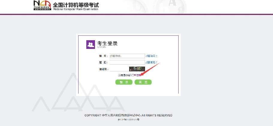 考生可以通过系统入口进入登录页面,通过登录页面“点击注册”的链接跳转: