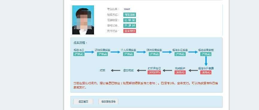 3.支付成功后报名流程完成,考生不能修改个人信息、科目信息或退考退费。