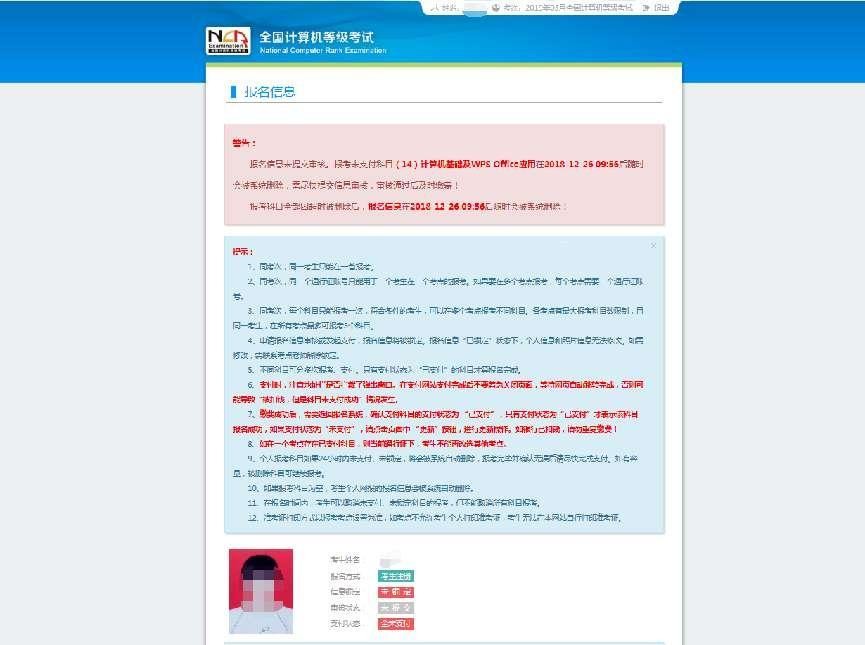 1.考生须在提交报名信息后的24个小时内缴费,否则系统将自动删除超时未缴费的报名信息。