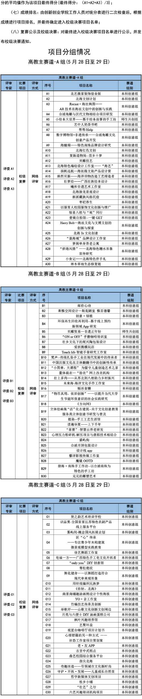 北海艺术设计学院第八届中国国际“互联网+”大学生创新创业大赛校级复赛入围名单公示与参赛通知