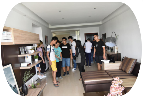 随后,我院师生受邀到精装修的样板房中参观学习。在参观的过程中,我院教师结合家居设计文化,详细地讲解了家居布局、家具配色、摄温运用、空间功能以及建筑装饰材料性能等。学生在参观过程中,对室内装修设计、家居设计方面提出问题,教师现场教学讲解,加深了学生对专业理论知识的理解。在参观交流的过程中,同学们也深刻地感受到装饰设计精致化以及注重客户文化体验的重要性。