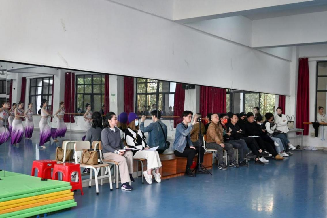 本次考核全面展示了我院舞蹈表演全体师生的优良教风和学风。在考核中担任评分的教授:殷强、覃海、杨建中、张龙对本次期末考核的质量给予高度肯定,并作了详细的点评和指导。(雷韦唯/摄)