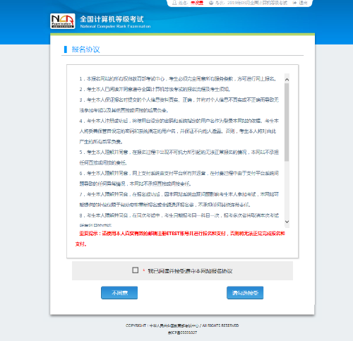 (一)注意:注册是在通行证管理网站进行的,不是NCRE的报名网站。注册完毕后,需要通过浏览器的后退功能或者地址栏输入地方的方式返回到NCRE报名入口。