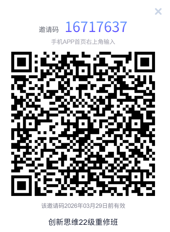 (十三)《创新思维》由哲学学院实施,请2022级重修的同学在手机上下载学习通APP2025年10月30日前实名(学号+姓名)进入班级班级群二维码如下: