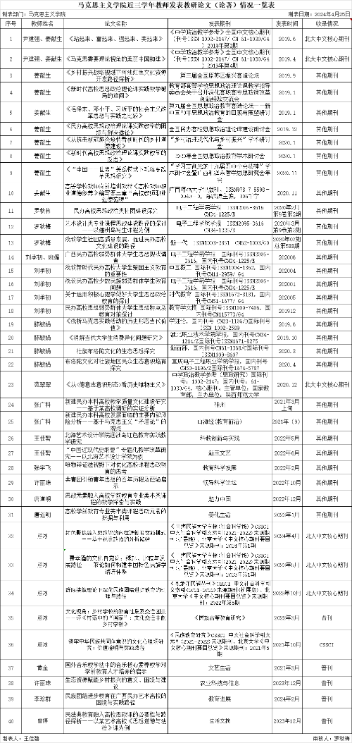 2024年马克思主义学院教师发表教研论文(论著)情况一览表(汇总)