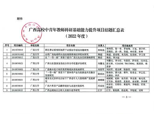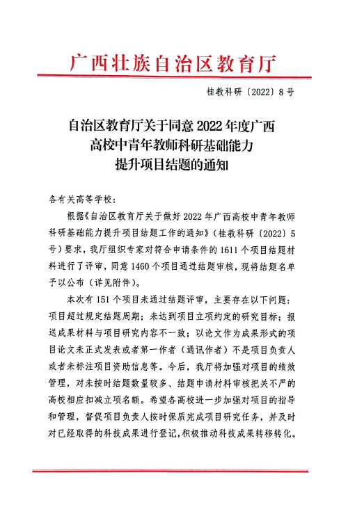 自治区教育厅关于同意2022年度广西高校中青年教师科研基础能力项目结题的通知