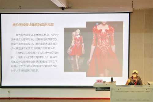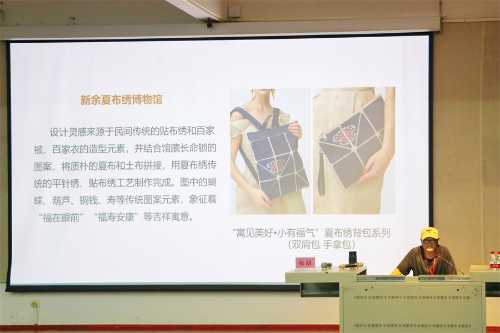 此次讲座中,张昕教授以非遗衍生品设计、非遗衍生品设计原理以及途径、国风灿烂走向世界三个版块向在场师生进行具体讲授。