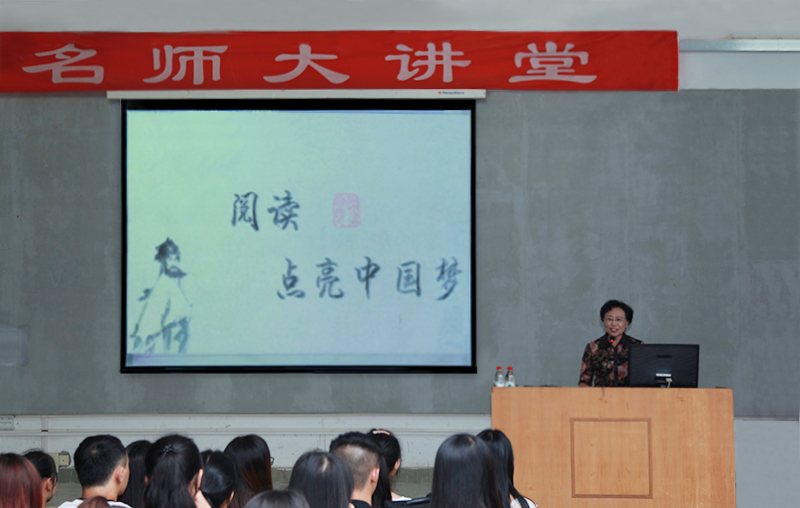 讲座中,于瑮教授首先从个人经历讲起,把她到目前为止的所有阅历都转换成经验故事与同学们分享交流。于瑮教授在讲座中讲诉道:“阅读需要有目的的去读实体书,找到阅读关键点和含金量,中国梦需要强大的精神来支持,用阅读点亮中国梦。”