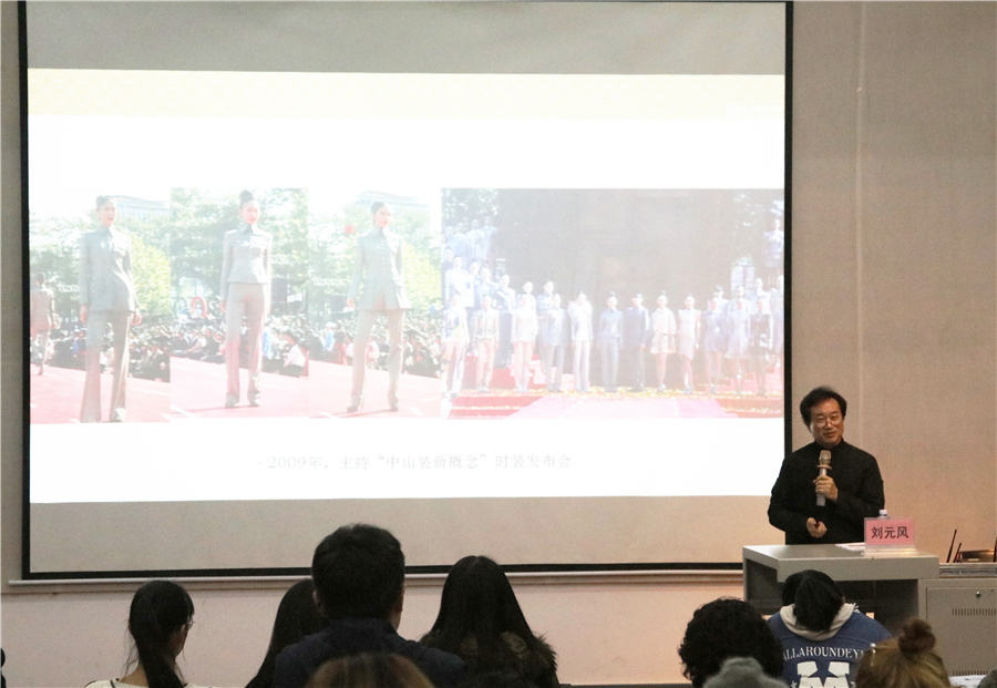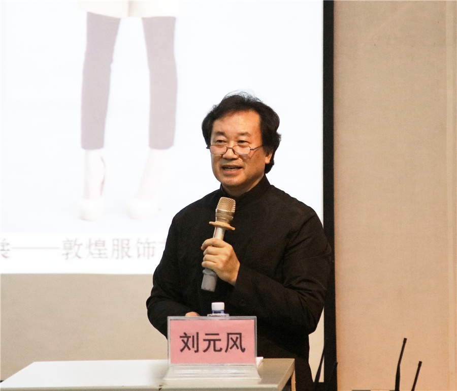 刘教授结合自身多年服装设计的研究成果,分析了如何进行民族服饰文化的传承和设计创新。他向我们展示了传统图案与自然图案的不同,讲述了许多生动的服装流行发展故事。他表示服装承载着振兴服饰文化的历史使命,设计师更要为民族服饰文化的振兴而不懈努力。