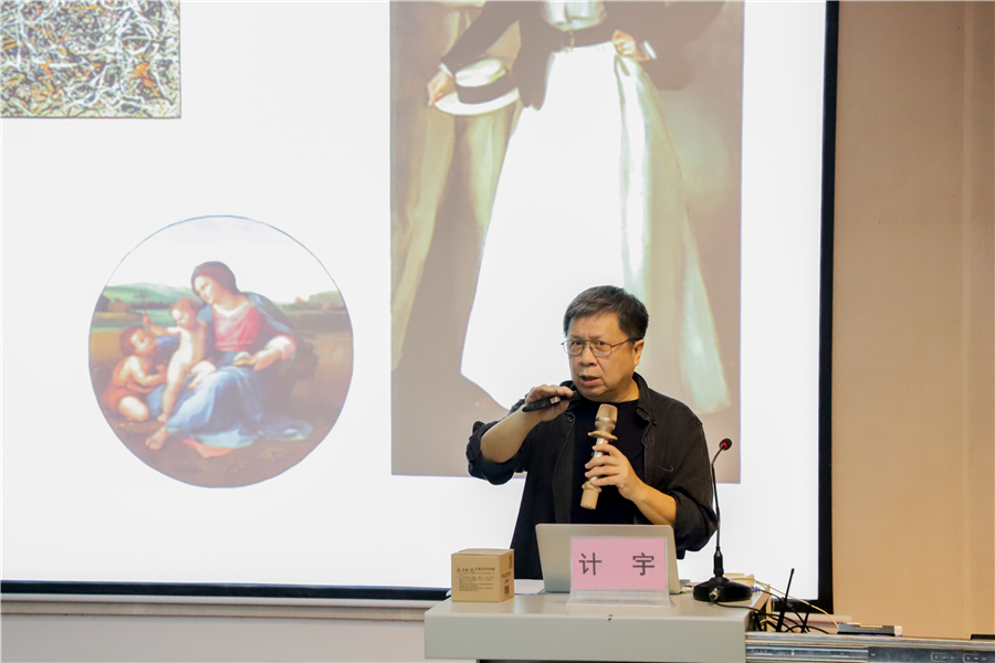 计宇教授以马克思主义哲学观来介绍文艺复兴到当代的西方绘画作品,深入解读西方绘画语言中的构图问题。计教授还与大家还分享了他在美国学习绘画和教学的经历和体会,分享了绘画的学习方法和创意思维。