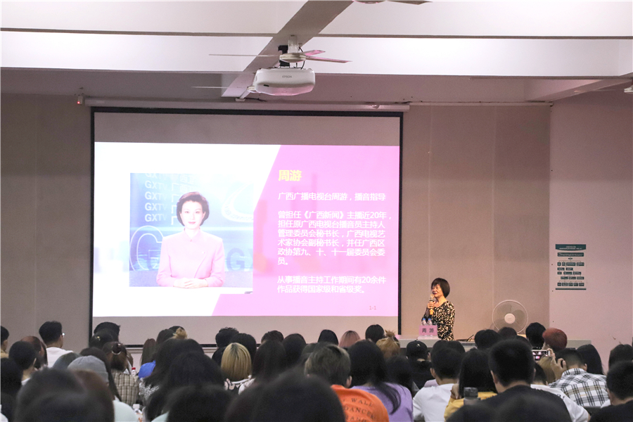 名师大讲堂||原广西电视台播音员主持人管理委员会秘书长周游教授为我校师生开展讲座