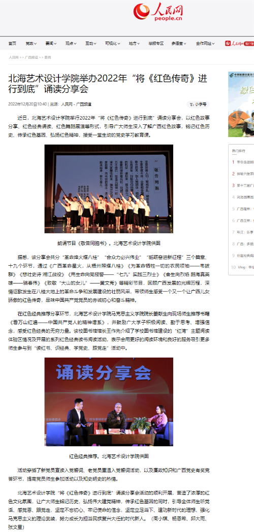 人民网:北海艺术设计学院举办2022年“将《红色传奇》进行到底”诵读分享会