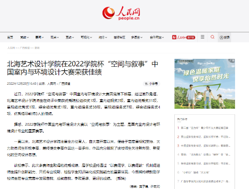 人民网:北海艺术设计学院在2022学院杯“空间与叙事”中国室内与环境设计大赛荣获佳绩