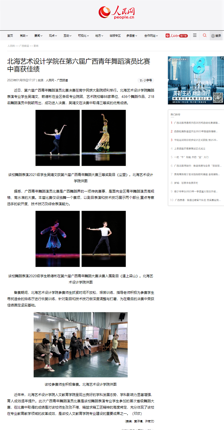 人民网:北海艺术设计学院在第六届广西青年舞蹈演员比赛中喜获佳绩