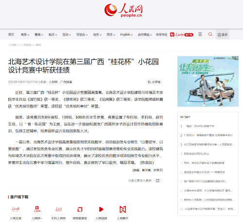 人民网:北海艺术设计学院在第三届广西“桂花杯”小花园设计竞赛中斩获佳绩