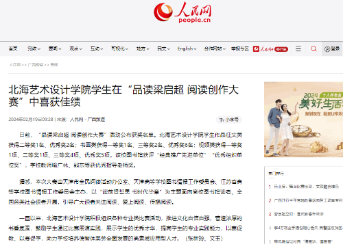 人民网:北海艺术设计学院学生在“品读梁启超 阅读创作大赛”中喜获佳绩