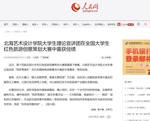 人民网:北海艺术设计学院大学生理论宣讲团在全国大学生红色旅游创意策划大赛中喜获佳绩