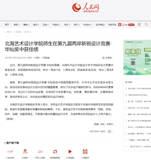 人民网:北海艺术设计学院师生在第九届两岸新锐设计竞赛·华灿奖中获佳绩